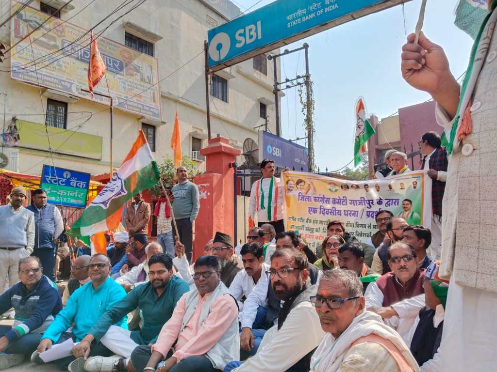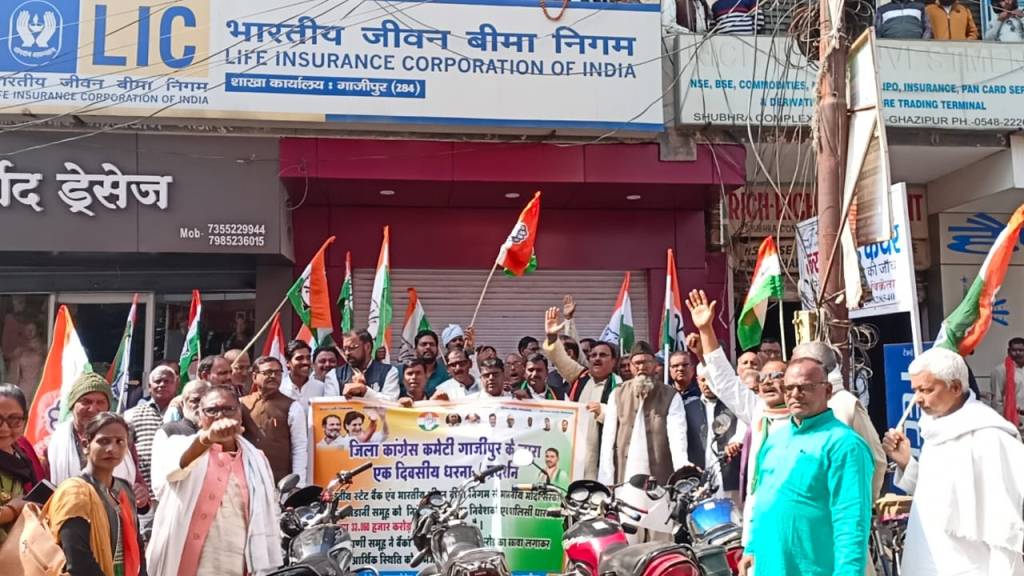 गाज़ीपुर।सोमवार को केंद्रीय नेतृत्व के आह्वान पर जिला कॉंग्रेस कमेटी ने स्थानीय शहर कोतवाली क्षेत्र के महुआबाग स्थित एलआईसी का घेराव कर नारेबाजी करते हुए जुलूस के रूप में मिश्रबाजार स्थित एसबीआई की मुख्य शाखा के सामने धरना प्रदर्शन कर सरकार को अडानी ग्रुप को गलत तरीके से राष्ट्रीयकृत बैंकों एवं वित्तीय संस्थानों द्वारा और एलआईसी में जमा जनता के पैसे से आर्थिक फांयदा पहुंचाने के आरोप में धरना प्रदर्शन किया और एसबीआई के सामने राष्ट्रपति को संबोधित पत्रक गाज़ीपुर जिलाधिकारी के प्रतिनिधि मजिस्ट्रेट के हवाले से दिया। जिसमें हिंडनबर्ग रिसर्च रिपोर्ट की विस्तार से निष्पक्ष जांच कराने के लिए सुप्रीम कोर्ट के मुख्य न्यायाधीश या संयुक्त संसदीय समिति (जेपीसी) बनाकर जांच की मांग की है।