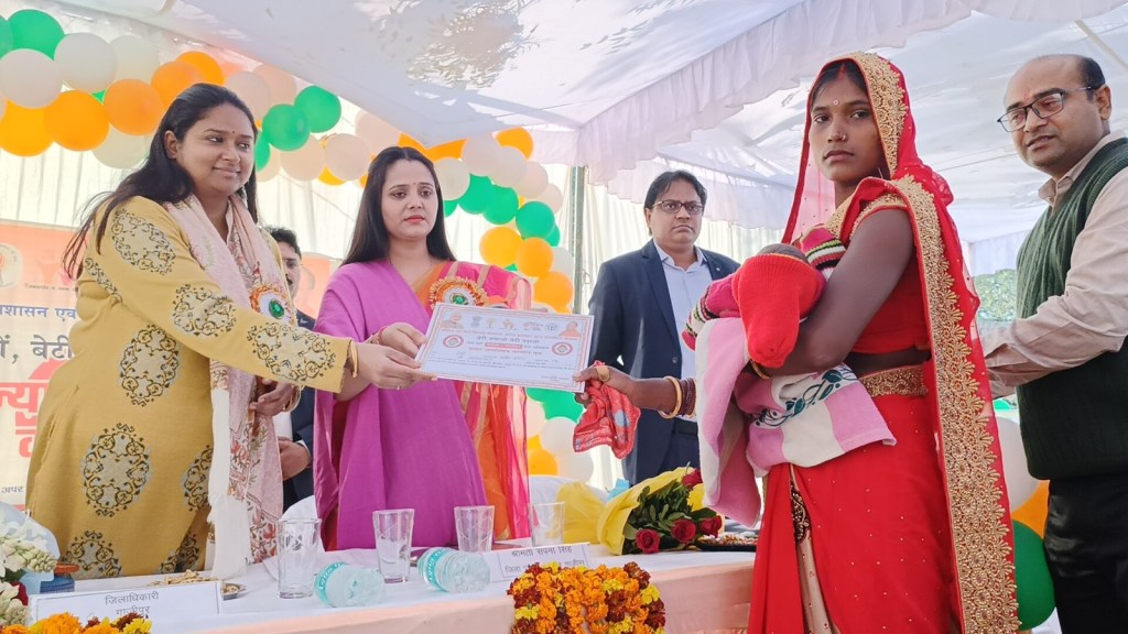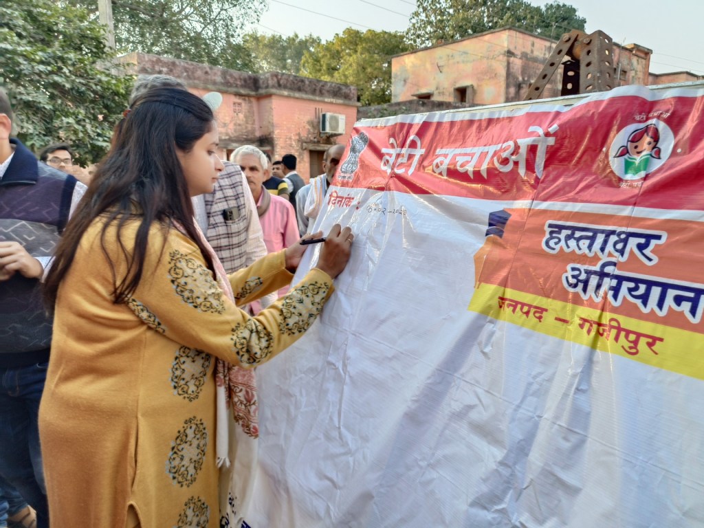 गाजीपुर। जिला प्रशासन एवं महिला कल्याण विभाग द्वारा संचालित बेटी बचाओ बेटी पढ़ाओ योजनांर्तगत कन्या जन्मोत्सव एवं हस्ताक्षर अभियान कार्यक्रम जनपद के समस्त पीएचसी सीएससी एवं जिला चिकित्सालय पर मनाया गया। इसी के अंतर्गत सोमवार को सामुदायिक स्वाथ्य केन्द्र सैदपुर में अपरान्ह 3 बजे जिलाधिकारी आर्यका अखौरी एवं जिला पंचायत अध्यक्ष सपना सिंह ने कन्या जन्मोत्सव के अवसर पर दीप प्रज्ज्वलित एवं भगवान गणेश की मूर्ती पर माल्यापर्ण एंव उपस्थित बच्चो के साथ केक काटकर कार्यक्रम का शुभारम्भ किया तथा बच्चो का अन्न प्रासन कराया। इस दौरान तहसील सैदपुर सीएससी क्षेत्र की ऐसी महिलाओं को बुलाकर उन्हें सम्मानित किया गया जिन्होंने माह जनवरी 2023 में बच्चियों को जन्म दिया है। जिसमें 65 लाभार्थियों को लाभान्वित किया गयां। इस कार्यक्रम के माध्यम से उन्हें यह संदेश दिया गया कि बेटियां घर की शान है, कन्या भ्रूण हत्या पर रोक लगे, बेटियों का स्वागत किया जाए तथा उनके स्वास्थ्य, शिक्षा पर ध्यान देते हुए उनके जीवन को सशक्त बनाते हुए उनके बेहतर भविष्य की कामना की जाये। उन्होने कहा कि इस अभियान के तहत इस जनपद मे लिंगानुपात पर अच्छा प्रभाव पडे़गा। इस पर जोर दिया जाए। उन्होंने भूण हत्या पर जवाब देते हुए कहा कि इस तरह की घृणित कृत्य करने वाले अल्ट्रासाउंड सेंटर पर पीसीपीएनडीटी एक्ट के तहत कार्रवाई की जाएगी तथा भूण हत्या की सूचना देने वाले को सम्मानित भी किया जाएगा। इसी क्रम में प्राथमिक स्वास्थ्य केन्द्र अन्धऊ मे कार्यक्रम आयोजित कर 50 लाभार्थियो को लाभान्वित किया गया। इस दौरान स्वास्थ्य विभाग तथा महिला कल्याण विभाग के अधिकारी कर्मचारी उपस्थित रहे।