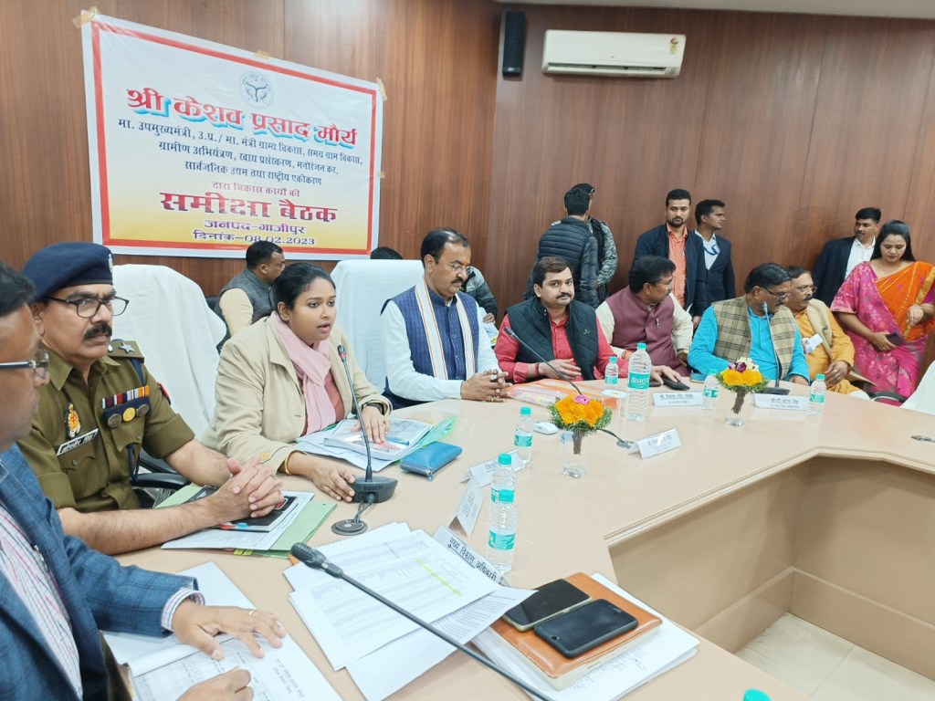 गाजीपुर। उत्तर प्रदेश के उप मुख्यमंत्री केशव प्रसाद मौर्य द्वारा विकास कार्याे की समीक्षा बैठक रायफल क्लब सभागार में बुधवार को सम्पन्न हुइ। बैठक में जिलाधिकारी आर्यका अखौरी ने जनपद मे हो रहे विकास कार्याे की विस्तृत रूपरेखा से उप मुख्यमंत्री को अवगत कराया। बैठक में उप मुख्यमंत्री ने भारत सरकार एवं उ0प्र0 सरकार द्वारा चलाई जा रही विभिन्न विकास परक योजनाओ की विस्तृत समीक्षा करते हुए प्रत्येक पात्र व्यक्तियो को योजनाओ का लाभ दिये जाने निर्देश दिया। सरकार की मंशा है कि कानून व्यवस्था चुस्त दुरूस्थ रहे। किसी भी मामले में शिथिलता न बरती जाये, अपराधियों, गुण्डा, माफियाओ पर कड़ी कार्यवाही की जाये। उन्होने कहा कि राजस्व ग्रामो में चक मार्गो को चिन्हित कर अतिक्रमण को हटाया जाये यदि फसले लगी है तो फसलो के कटने का समय देकर उसे कटने के उपरान्त सही कराकर चलने योग्य बनाया जाये। उन्होने जनपद मे अमृत सरोवर की जानकारी लेने पर बताया गया कि जनपद में 285 अमृत सरोवर चिन्हित किये गये है जिसमें 277 पूर्ण हो चुके हैं। उन्होेने अमृत सरोवर के अन्दर एवं बाहर की भूमि पर हुए कब्जे को हटवाकर वृक्षारोपण कराने का निर्देश दिये। इसके अतिरिक्त गॉवो मे अभियान चलाकर सरकारी भूमि, चारागाहो की भूमि को कब्जा मुक्त कराए जाने को कहा। उन्होने निराश्रित पशुओ के सम्बन्ध मे कहा कि कोई भी व्यक्ति पशुओ को रात के अन्धेरे मे रास्ते/सड़को पर न छोड़े बल्कि उसे अपने निकटतम गो-आश्रय स्थलो मे सुपुर्द कर दे। गो-आश्रय स्थलो पर पशुओ के लिए चारा, पानी, ईलाज की व्यवस्था सुनिश्चित रहे। पशु स्वस्थ्य रहे यही सरकार की मंशा है। उन्होने जल जीवन मिशन (हर घर नल) के तहत कराये जा रहे कार्याे की जानकारी ली तथा सम्बन्धित अधिकारी को 1 मीटर नीचे तक पाईप लाईन डालने का निर्देश दिया। इसके अतिरिक्त सड़को पर खोदे गये गढ्ढे को सही कराते हुए आवागमन हेतु चलने योग्य बनाए जाने को कहा। विद्युत विभाग की समीक्षा के दौरान जनपद में विद्युत आपूर्ति की जानकारी ली तथा फर्जी बिलो पर विशेष ध्यान देते हुए कार्यवाही का निर्देश दिया। उन्होने सख्त निर्देश दिया कि किसी भी उपभोक्ता का फर्जी बिल जारी न हो। इस तरह की शिकायत अधिकाधिक प्राप्त हो रही हैं, अन्यथा सम्बन्धित अधिकारी स्वयं जिम्मेदार होगे। उन्होने कहा कि प्रधानमंत्री आवास एंव मुख्यमंत्री आवास योजना के अन्तर्गत पात्रो को ही आवास योजना से आच्छादित कर लाभ दिया जाये इसमें किसी प्रकार के भ्रष्टाचार की शिकायत प्राप्त न हो। उन्होने जनपद में धान क्रय केन्द्रो की जानकारी ली जिसमें बताया कि 90 प्रतिशत क्रय किया जा चुका है तथा किसानो को क्रय केन्द्र पर किसी प्रकार की समस्या नही है। जिस पर उन्होने प्रशंन्न्ता व्यक