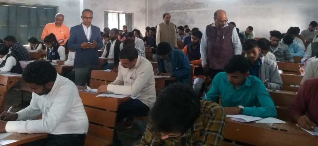 गाजीपुर। पी.जी. कॉलेज में चल रही पूर्वांचल विश्वविद्यालय की परीक्षाओं के क्रम में 24 फरवरी शुक्रवार को सुबह की पाली में स्नातक विधि, बी.बी.ए, बी.सी.ए. प्रथम सेमेस्टर एवं स्नातकोत्तर हिंदी, संस्कृत, अंग्रेजी, प्रथम सेमेस्टर की परीक्षा संपन्न हुई। पी. जी. कालेज के आंतरिक उड़का दल द्वारा परीक्षा के दौरान स्नातक विधि की एक छात्रा को नकल करते हुए पकड़ कर अनुचित साधन प्रयोग के प्राविधान के अन्तर्गत कार्यवाही की गई। सुबह की पाली में स्नातक विधि में पंजीकृत 306 में 252, बीबीए में पंजीकृत 58 में 57, बीसीए में पंजीकृत 261 में 215 स्नातकोत्तर हिंदी में 92 में 84, संस्कृत में सभी 18, अंग्रेजी में 66 में 61 परीक्षार्थी सहित कुल 801 पंजीकृत, 687 उपस्थित एवं कुल 114 परीक्षार्थी अनुपस्थित रहे। इसी तरह सांय की पाली में कुल 262 पंजीकृत, 248 उपस्थित एवं 14 अनुपस्थित रहे। परीक्षार्थियों में स्नातक विधि पंचम सेमेस्टर में 120 में 115 , बी.बी.ए. पंचम सेमेस्टर में सभी 30 स्नातकोत्तर प्रथम सेमेस्टर गणित में 57 में 51, वनस्पति विज्ञान में 26 में 24 एवं रसायन विज्ञान 29 में 28 परीक्षार्थी उपस्थित रहे। परीक्षाओं की सुचिता एवं पारदर्शिता को लेकर स्नातकोत्तर महाविद्यालय, गाजीपुर के प्राचार्य प्रोफेसर डॉ०राघवेन्द्र कुमार पाण्डेय ने बताया कि विश्वविद्यालय की परीक्षाओं के लिए परीक्षा विभाग, पूर्वांचल विश्वविद्यालय के संपर्क में है। सूचिता एवं पारदर्शिता पूर्वक परीक्षा संपन्न कराने के लिए सभी आवश्यक कदम उठाए जा रहे हैं। परीक्षा देने के लिए महाविद्यालय परिसर के गेट से घुसते समय छात्र-छात्राओं को किसी भी तरीके के किसी अनुचित साधन का प्रयोग न करने की हिदायत दी जा रही है। नकल करते पकड़े गए विद्यार्थियों के खिलाफ विश्वविद्यालय के दिशा निर्देश के क्रम में आवश्यक कार्यवाही भी की जा रही है। आंतरिक उड़का दल के सदस्य के रूप में डॉ दिनेश कुमार सिंह, प्रोफेसर एस एन सिंह, प्रोफेसर अरुण कुमार यादव,आर पी सिंह, प्रोफेसर रविशंकर सिंह, डॉक्टर बद्रीनाथ सिंह आदि उपस्थित रहे।