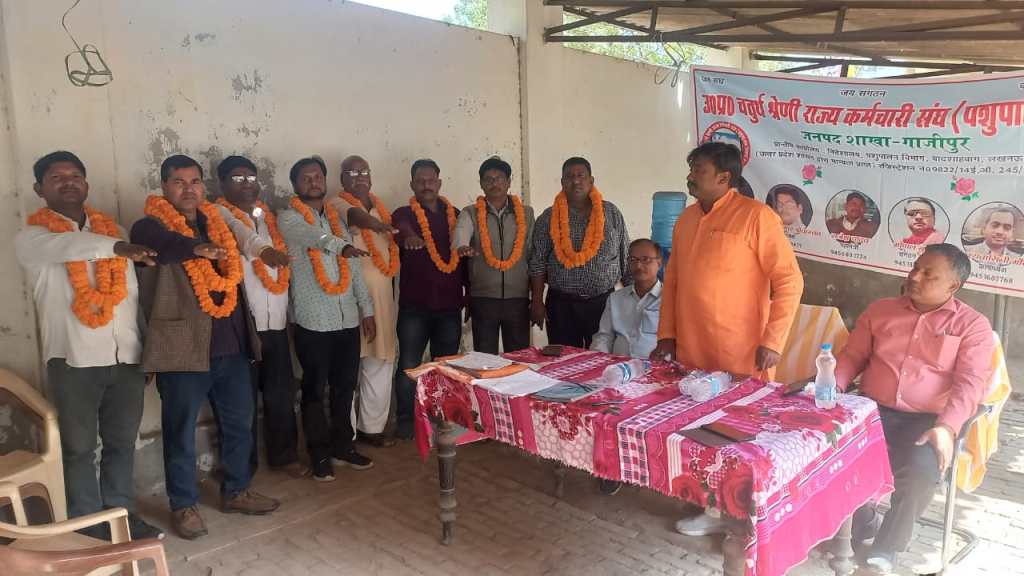 गाजीपुर। सोमवार को पूर्व से घोषित उत्तर प्रदेश चतुर्थ श्रेणी कर्मचारी संघ (पशुपालन विभाग) का द्विवार्षिक अधिवेशन राजकीय पशु जिला अस्पताल पर सम्पन्न हुआ। चुनाव सम्पन्न कराने के लिए मुख्य पशु चिकित्सा अधिकारी द्वारा डाक्टर शिव कुमार वैश्य को चुनाव अधिकारी नामित किया गया था। जिसमे सर्व सम्मति से ओमप्रकाश यादव अध्यक्ष, अरविंद श्रीवास्तव, मंत्री राजेंद्र प्रसाद वरिष्ठ उपाध्यक्ष, राजेश कुमार उपाध्यक्ष, गोपाल प्रसाद कोषाध्यक्ष, राधेश्याम संयुक्त मंत्री, राजेंद्र आडिटर निर्विरोध निर्वाचित हुए। नवनिर्वाचित पदाधिकारियों को राज्य कर्मचारी संयुक्त परिषद के जिलाध्यक्ष दुर्गेश कुमार श्रीवास्तव द्वारा गोपनीयता की शपथ दिलाई गई।