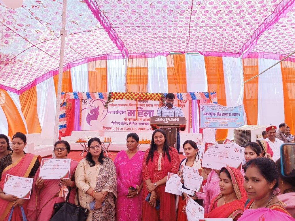 गाजीपुर। शुक्रवार को रायफल क्लब में जिलाधिकारी आर्याका अखौरी के अध्यक्षता में अन्तर्राष्ट्रीय महिला दिवस एवं होली मिलन का कार्यक्रम आयोजित किया गया, जिसमें मुख्य अथिति पूर्व नगर पालिका अध्यक्ष सरिता अग्रवाल एवं बाल कल्याण समिति के अध्यक्ष सीमा पाठक उपस्थित रहीं। कार्यक्रम में मुख्यमंत्री बाल सेवा योजना कोविड-19 के 35 लाभार्थियों को लैपटाप एवं आजीविका मिशन समूह की 25 महिलाओं को सिलाई मशीन वितरित किया गया। इस दौरान 22 महिला ग्राम प्रधान, 20 आगनवाड़ी कार्यकत्री एवं 2 स्टाफ नर्स, 2 ए एन एम एवं 3 आशा बहु को साल एवं प्रशस्ति पत्र देकर सम्मानित किया गया। कार्यक्रम में जिला कार्यक्रम अधिकारी, जिला दिव्यांजन अधिकारी एवं जनपद के अन्य अधिकारी कार्यक्रम में उपस्थित रहे। कार्यक्रम का संचालन जिला दिव्यागजन सशक्तिकरण अधिकारी नरेन्द्र विश्वकर्मा ने किया। कार्यक्रम का समापन जिला प्रोबेशन अधिकारी द्वारा धन्यवाद के साथ किया गया।