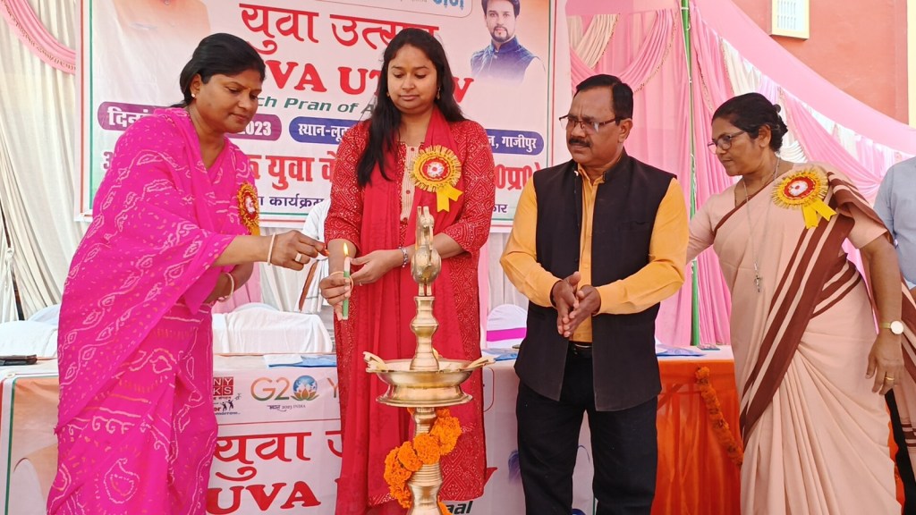 गाजीपुर। नेहरू युवा केन्द्र युवा कार्यक्रम एवं खेल मंत्रालय भारत सरकार के तत्वावधान में जिला युवा उत्सव का भव्य आयोजन लूदर्श कान्वेन्ट बालिका इण्टर कालेज के प्रांगण में किया गया। कार्यक्रम का शुभारम्भ जिलाधिकारी आर्यका अखौरी एवं मंचासीन अतिथियों द्वारा दीप प्रज्ज्वलन कर किया गया। मुख्य अतिथि ने युवाओं को सम्बोधित करते हुए कहा कि देश आजादी के अमृत काल के दौर में है। आजादी के 100 वर्ष पूरे होने पर हमारा देश शहीदों के सपनों के अनुरूप कैसे बने, जिन्होंने अपना सर्वेच्च बलिदान प्राणों की आहूति से देश को स्वतंत्र कराया था। अब यह हमारा दायित्व है कि देश को विश्व गुरू कैसे बनायें। उन्होंने प्रधानमंत्री द्वारा स्वतंत्रा दिवस के अवसर पर लाल किला के प्राचीर से पंच प्रण पर दिये गये भाषण का उल्लेख करते हुए कहा कि पहले भारत को विकसित राष्ट्र की श्रेणी में प्रत्येक दशा में अपने पुरूषार्थ से लाना ही होगा। दूसरा गुलामी की हर सोच से विचारों को मुक्ति दिलानी होगी। तीसरा हमें अपनी विरासत पर गर्व होना चाहिए। चौथा एकता एवं एक जुटता किसी भी राष्ट्र की प्रगति के लिए आवश्यक है। हमारा देश विविधताओं का देश है। पॉचवा नागरिक कर्तव्य है। हम अधिकार की बात तो करते है किन्तु जब कर्तव्य की बात आती है तो पीछे हट जाते है, ये पंच प्रण देश को सर्व शक्तिमान बनायेगे तथा 2047 में हमारा देश विश्व गुरू बनेगा। उन्होने विभिन्न प्रतियोगिताओं के विजेताओं को सम्मानित किया। जिलाधिकारी द्वारा जल संरक्षण की दिशा में जन जागरूकता के लिए कैच द रेन पोस्टर का शुभारम्भ किया गया। उन्होने नेहरू युवा केन्द्र द्वारा युवा उत्सव के भव्य आयोजन की सराहना की। सभी का स्वागत नेहरू युवा केन्द्र के जिला युवा अधिकारी कपिल देव राम ने किया। नगर पालिका परिषद की पूर्व चेयरमैन सरिता अग्रवाल ने कहा कि हर भारतीय को पहले देश के बारे में सोचना चाहिए। आजादी कैसे हमारे पूर्वजों ने हासिंल की इसे भूलना नही चाहिए। एक भारत श्रेष्ठ भारत की परिकल्पना को साकार करना होगा। युवाओं तक पहुचने का नेहरू युवा केन्द्र एक सफल मंच है।
