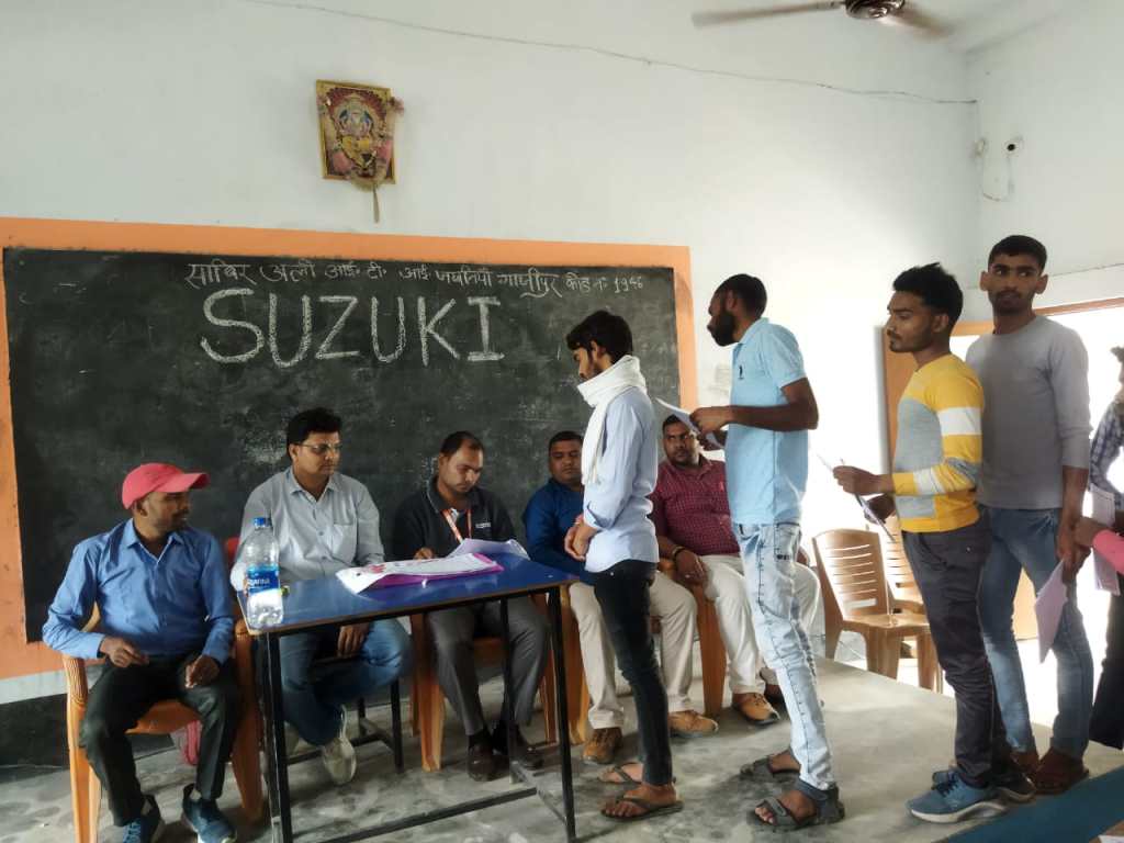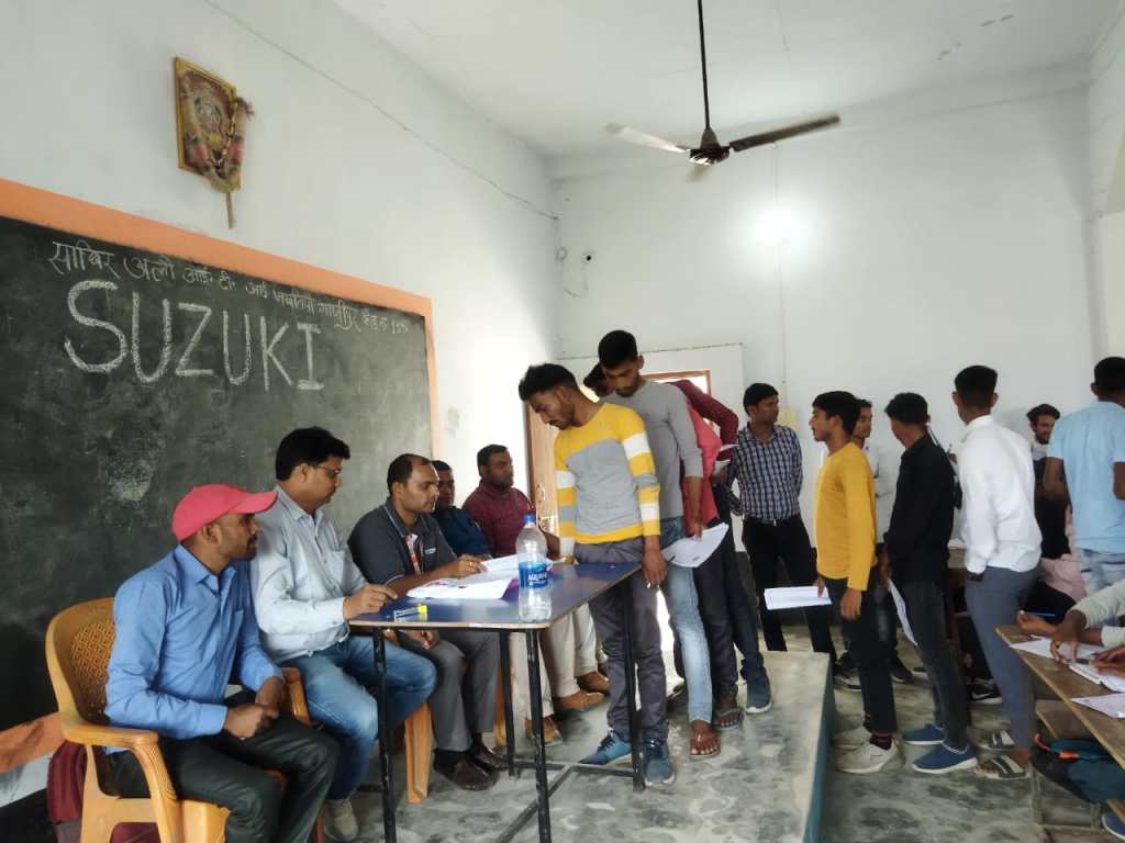 (दुल्लहपुर) गाजीपुर। भारत की सबसे बड़ी कार मैनुफैक्चरिंग कंपनी मारुति सुजुकी रोजगार देने के लिए जिले में आई। उसने भुडकुड़ा थाना क्षेत्र के जखनियां गांव स्थित साबिर अली नेशनल प्राइवेट आईटीआई कॉलेज में गुरुवार को अहमदाबाद गुजरात की कंपनी सुजुकी मोटर्स ने इच्छुक अभ्यर्थियों का परीक्षा लेकर परीक्षा में सफल होने वाले अभ्यर्थियों का चयन किया। इस दौरान कंपनी के सुनील कुमार ने 160 आईटीआई के विद्यार्थियों को परीक्षा के बाद इंटरव्यू लिया और सारे विद्यार्थियों को नौकरी देने के लिए आवेदन फार्म भी लिया। इस मौके पर कंपनी के कैरियर एचार्य सुनील कुमार ने बताया कि बेरोजगारी दूर करने के लिए मारुति सुजुकी रोजगार के अवसर खोला है। जिसमें 21000 मानदेय में रखा जाएगा। जिसमें 160 विद्यार्थियों का चयन किया गया तथा जिले में भी 17 मार्च को आदर्श आईटीआई कॉलेज में चयन किया जाएगा। जिसमें इच्छुक अभ्यर्थी डॉक्यूमेंट लेकर शामिल हो सकता है। इस मौके पर प्रबंधक अमीर अली, धर्मवीर भारद्वाज, अमरनाथ यादव, संदीप कुमार, गोविंद पटेल, शेर बहादुर सहित अन्य लोग उपस्थित रहे।