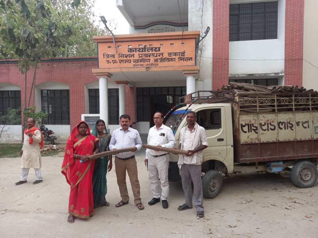 गाजीपुर। गुरुवार को राष्ट्रीय ग्रामीण आजीविका मिशन के अंतर्गत गठित स्वयं सहायता समूह के माध्यम से गो आश्रय स्थल परजीपाह से निर्मित गोबर के कंडे की आपूर्ति जनपद में प्रथम बार शमशान घाट पर की गयी। गोबर से कंडे बनाने का कार्य जनपद मे पहली बार बन्दना स्वयं सहायता समूह द्वारा प्रारम्भ किया गया। गोबर के कंडे का प्रयोग शमशान घाट पर शव जलाने हेतु किया जायेगा। इस कार्य से जहाँ समूह की महिलाओं के आय में वृद्धि हो रही है।