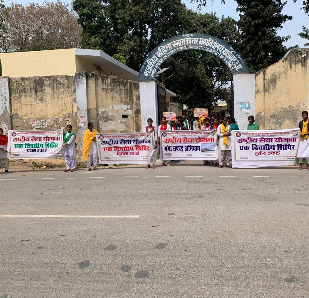 गाजीपुर। रविवार को राजकीय महिला स्नातकोत्तर महाविद्यालय की राष्ट्रीय सेवा योजना के एक दिवसीय शिविर का प्रारंभ प्रार्थना एवं योगाभ्यास से हुआ। तदुपरांत छात्राओं ने राष्ट्रीय सेवा योजना भवन एवं परिसर की साफ सफाई कर छात्राओं ने गंगा सफाई जागरूकता रैली निकाली। जिसे प्राचार्य प्रो. सविता भारद्वाज ने हरी झंडी दिखाकर रवाना किया। डा अमित यादव, डॉ गजनफर सईद एवं डा संगीता मौर्य के नेतृत्व में यह रैली ददरीघाट, मिंयापूरा, कलेक्टर घाट होते हुए सुभाषनगर प्राथमिक विद्यालय पहुंची।