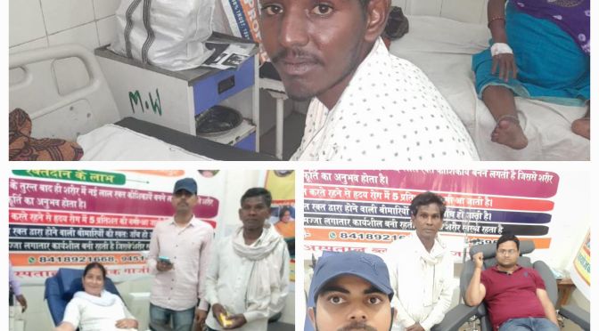 गाजीपुर। मेडिकल कॉलेज में भर्ती असहाय सूरज प्रकाश उम्र 16 वर्ष पुत्र उमाशंकर प्लास्टिक एनीमिया (कैंसर) से पीड़ित है। जिसका इलाज पीजीआई में चल रहा है। जिसको डॉक्टर ने दो यूनिट ब्लड और प्लेटलेट्स चढ़ाने के बाद ब्रोन मैरो कराने का सुझाव दिया। जिसके बाद सूरज प्रकाश को तत्काल दो यूनिट ब्लड और प्लेटलेट्स की आवश्यकता थी। पीजीआई में ब्लड और प्लेटलेट्स की व्यवस्था नही था। जिसकी जानकारी होते ही कुँवर वीरेन्द्र सिंह ने पीजीआई में भर्ती सूरज प्रकाश के पिता उमाशंकर से बात किया और सूरज प्रकाश को गाजीपुर बुलाकर मेडिकल कॉलेज में भर्ती कराया। भर्ती होने के बाद एक यूनिट ब्लड मेडिकल कॉलेज में कार्यरत स्टॉप नर्स पूजा राय ने रक्तदान कर दिया। दूसरा रक्तदान मुकेश सिंह ने किया। मरीज सूरज प्रकाश और उनके असहाय पिता उमाशंकर से रक्तदानों ने मिलकर जल्द स्वस्थ होने की कामना किया। बता दें कि सूरज प्रकाश को पीजीआई में भर्ती कराने में आरुष चौधरी का योगदान रहा।