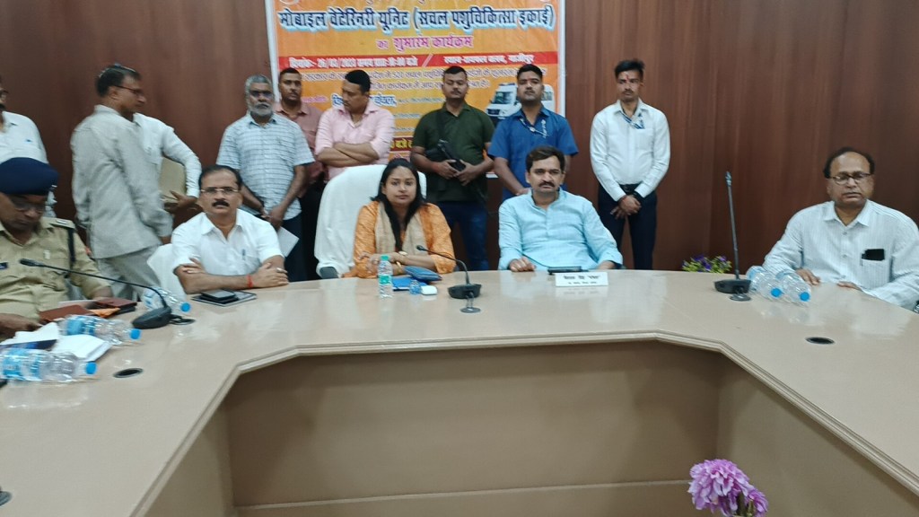 उन्होने पशु चिकित्साधिकारियो को इस योजना के तहत टोल फ्री हेल्पलाइन नंबर 1962 पर पशुपालकों के द्वारा जो कॉल की जाए उनका तुरंत संज्ञान लेते हुए घर बैठे पशुपालकों को पशुओं का इलाज संभव कराया जाए ताकि सरकार की इस महत्वाकांक्षी योजना का सरलता के साथ सभी पशुपालकों को घर बैठे इस योजना का लाभ प्राप्त हो सके। उन्होंने यह भी कहा कि यह बहुत ही महत्वाकांक्षी योजना है। अतः जनपद में पशुपालकों के लिए इसे बहुत ही दृढ़ता के साथ संचालित किया जाए। कार्यक्रम के अवसर पर जिलाधिकारी आर्यका अखौरी ने सभी वेटरिनरी यूनिट कि मोबाइल टीमों को निर्धारित कार्यक्रम के तहत कार्य करने के निर्देश दिए। उन्होंने कहा कि इस महत्वाकांक्षी योजना के तहत दो मोबाइल वेटरिनरी यूनिट निर्धारित रूट पर प्रतिदिन सुबह 8 बजे से 2 बजे तक संचालित होंगी। इसी प्रकार आपातकालीन सेवा में प्रतिदिन प्रातः 10 बजे से रात्रि 08 बजे तक सेवा प्रदान करेंगे तथा उनके जो मानक तय किए गए हैं सभी यूनिट अपने कार्यक्रम के तहत ग्रामों में पहुंचकर पशुपालकों को इस योजना का लाभ उपलब्ध कराएंगे। संबंधित यूनिट के चिकित्सा अधिकारी एवं अन्य स्टाफ टोल फ्री नंबर के माध्यम से काल प्राप्त होने के उपरांत तत्काल कार्रवाई सुनिश्चित करते हुए निर्धारित स्थान पर पहुंचकर पशुपालकों को इस योजना का लाभ पहुंचाने की कार्यवाही सुनिश्चित करेंगे ताकि मुख्यमंत्री की मंशा के अनुरूप इस महत्वाकांक्षी कार्यक्रम का जनपद के सभी पशुपालकों को भरपूर लाभ प्राप्त हो सके। कार्यक्रम के अवसर पर मुख्य विकास अधिकारी संतोष कुमार वैश्य, पुलिस अधीक्षक (शहर), मुख्य पशु चिकित्सा अधिकारी शिव कुमार रावत, परियोजना निदेशक राजेश यादव, अन्य संबंधित अधिकारी उपस्थित रहे।