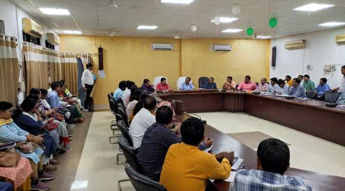 गाजीपुर। मंगलवार को विकास भवन सभागार में जिला पोषण समिति की बैठक मुख्य विकास अधिकारी की अध्यक्षता में सम्पन्न हुयी। बैठक में उप मुख्य चिकित्सा अधिकारी, परियोजना निदेशक, जिला कृषि अधिकारी, जिला पंचायतराज अधिकारी, जिला पूर्ति अधिकारी, उपायुक्त मनरेगा, उपायुक्त आजीविका मिशन, नेहरू युवा केन्द्र के सदस्य, क्रीड़ा अधिकारी, जिला समन्वयक तकनीकी सहयोग ईकाई एवं समस्त बाल विकास परियोजना अधिकारियों के द्धारा प्रतिभाग किया गया। बैठक में पोषण पखवारा के सफल क्रियान्वयन, तथा उसके सही ढंग से संचालित करने हेतु वित्तीय कार्य योजना, कायाकल्प से आंगनबाड़ी भवन निर्माण, पोषाहार वितरण, पोषण ट्रैकर, छत्ब् रेफ़रल, सैम बच्चों का समुदाय एवं फैसिलिटी स्तर पर प्रबंधन, आदि बिंदुओं पर मुख्य विकास अधिकारी द्वारा विस्तृत समीक्षा के साथ साथ आवश्यक दिशा निर्देश प्रदान किया गया।