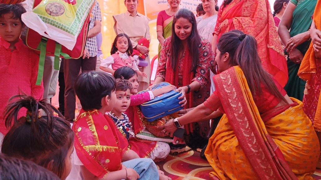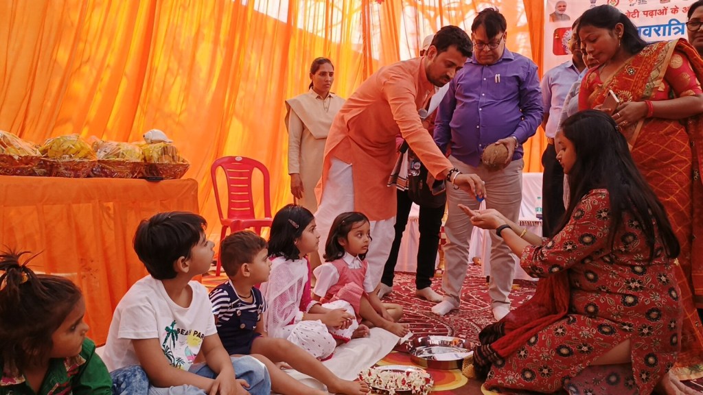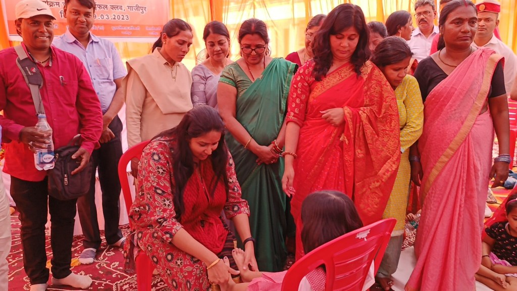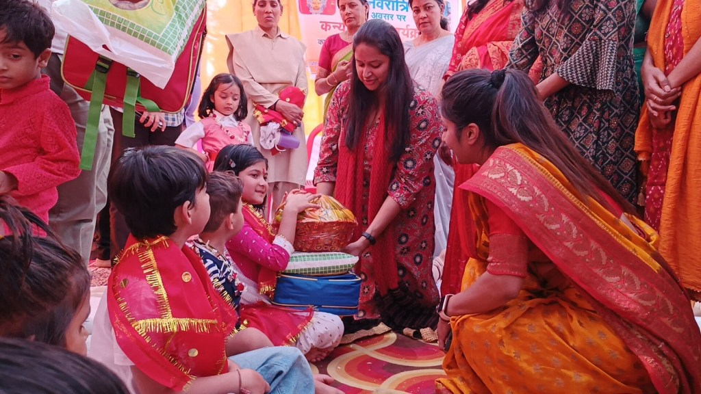 गाजीपुर। जिला प्रोबेशन अधिकारी ने बताया है कि महिला कल्याण विभाग द्वारा बेटी बचाओ बेटी पढ़ाओ योजना के अन्तर्गत जिलाधिकारी आर्यका अखौरी की अध्यक्षता में चैत्र नवरात्र की अष्टमी तिथि को राइफल क्लब परिषर में 61 कन्याओं का कन्या पूजन बुधवार को किया गया। उन्होंने कन्याओं को भोजन कराया गया तथा कन्याओं को दक्षिणा स्वरूप प्रत्येक कन्याओं को 501 रुपया वितरित किया गया। इसके साथ ही साथ प्रत्येक कन्याओ को फल की टोकरी, स्कूल बैंग जिसमें कापी, पेन्सिल, कलर, रोल, रबर कटर, डेरी मिल्क चाकलेट का पैकेट, लाई, चना, गुड, भी वितरित किया। कन्या पूजन कार्यक्रम में अपर जिलाधिकारी वि0/रा0, जिला प्रोबेशन अधिकारी, जिला मतस्य अधिकारी, श्रम प्रवर्तन अधिकारी-सैदपुर, श्रम प्रवर्तन अधिकारी-गाजीपुर, अधिशासी अभियन्ता लघु सिचाई, जिला कार्यक्रम अधिकारी जिला समाज कल्याण अधिकारी, जिला पिछड़ा वर्ग कल्याण अधिकारी एवं जिला प्रोबेशन कार्यालय के समस्त अधिकारी व कर्मचारी उपस्थित रहें।