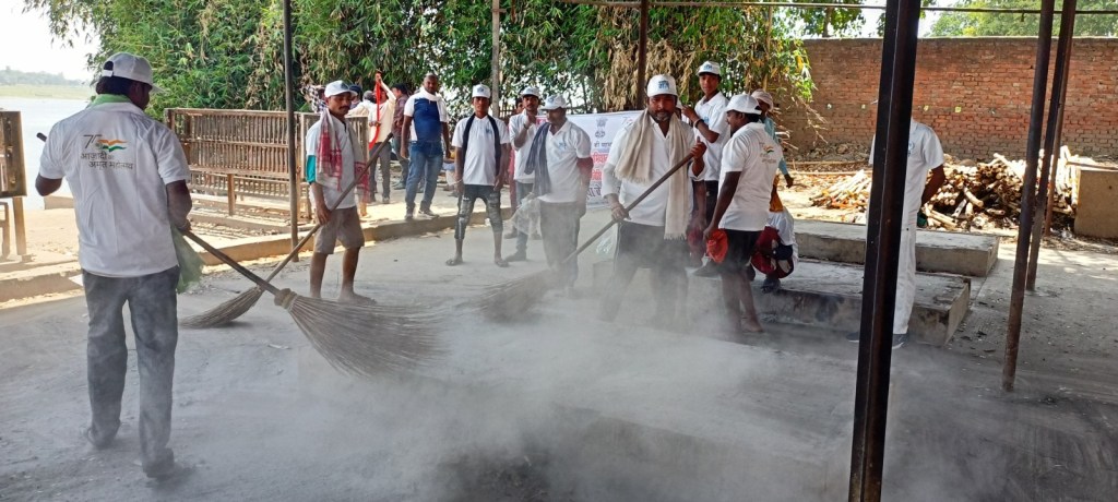 गाजीपुर। नमामि गंगे अभियान में युवाओं की सहभागिता कार्यक्रम के अंतर्गत शमशान घाट पर वृहद स्तर पर स्वच्छता अभियान गुरूवार को चलाया गया। स्वच्छता अभियान में डोम समाज एवं बांसफोर समाज के लोगों ने बढ़-चढ़कर प्रतिभाग किया। जिला परियोजना अधिकारी बृजेश कुमार श्रीवास्तव ने कहा कि शमशान घाट एक पवित्र भूमि है, मनुष्य के जीवन का अंतिम यात्रा श्मशान घाट मां गंगा के तट पर आकर समाप्त होता है एवं यही से स्वर्ग का रास्ता प्रशस्त होता है। इसलिए स्वच्छता अभियान चलाकर शमशान भूमि को स्वच्छ रखने का संदेश दिया जा रहा है। डोम समाज एवं बासफोर समाज का शमशान भूमि को स्वच्छ रखने में महत्वपूर्ण भूमिका है