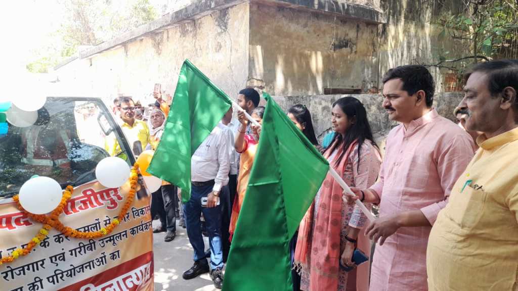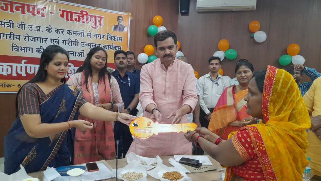 गाजीपुर। मुख्यमंत्री योगी आदित्य नाथ के द्वारा नगर विकास विभाग नगरीय रोजगार एवं गरीबी उन्मूलन कार्यक्रम विभाग की परियोजनाओ का लोकार्पण/शिलान्याश कार्यक्रम गुरूवार को पूर्वान्ह 11 बजे गोमती नगर स्थित नगरीय निकाय निदेशालय सभागार से किया गया। जिसमें मुख्यमंत्री ने प्रदेश मे नगर विकास विभाग के 8 हजार 700 करोड़ की विभिन्न परियोजनाओ का लोकार्पण/शिलान्याश किया। इस कार्यक्रम का लाईव प्रसारण विधान परिषद सदस्य विशाल सिंह चंचल, जिला पंचायत अध्यक्ष सपना सिंह, जिलाधिकारी आर्यका अखौरी, अपर जिलाधिकारी वि0रा0, सम्बन्धित अधिकारियों, पूर्व अध्यक्ष नगर पालिका परिषद सरिता अग्रवाल, विभिन्न वार्डो के सभासद, आवास योजना के लाभार्थियो की उपस्थित में देखा गया। कार्यक्रम कें अन्त में मुख्य अतिथि द्वारा प्रधानमंत्री आवास योजना से आच्छादित लाभार्थियो को आवास पूर्ण होने पर उन्हे सांकेतिक रूप से आवास की चाभी का वितरण एवं स्वच्छता कार्यक्रम हेतु जनपद में लगभग 2 करोड़ 22 लाख 5 हजार की लागत के उपकरण/मशीनो को हरी झण्डी दिखाकर रवाना किया गया। जिसमें 2 रिफ्यूज कॉपेक्टर, 5 ट्रैक्टर, 5 मिनी टिपर, 2 जे0सी0बी एवं अन्य उपकरण/मशीने शामिल रही। कार्यक्रम में मुख्य मंत्री द्वारा विभिन्न विकास परक योजनाओ के शिलान्याश/उद्घाटन पर बधाई देते हुए विधान परिषद सदस्य विशाल सिंह चंचल ने कहा कि आज का दिन उत्तर प्रदेश के नगर पालिकाओ के लिए बड़ा दिन है।