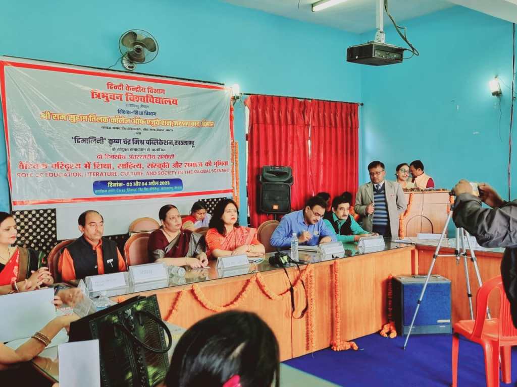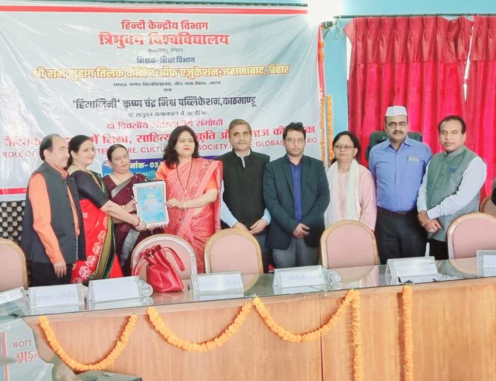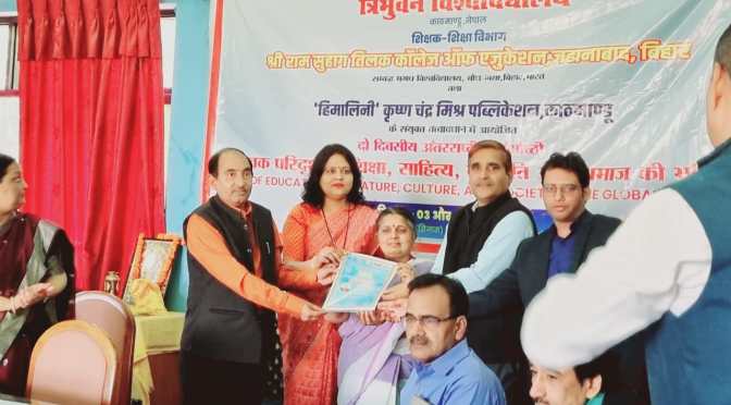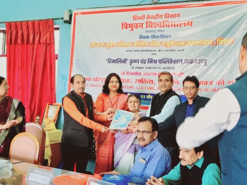 गाजीपुर। हिन्दी केंद्रीय विभाग, त्रिभुवन विश्विविद्यालय काठमाण्डू, नेपाल और शिक्षक-शिक्षा विभाग श्री राम तिलक कॉलेज आफ एजुकेशन, जहानाबाद (बिहार) और ‘हिमालिनी’ कृष्ण चंद्र मिश्र पब्लिकेशन काठमांडू, नेपाल के संयुक्त तत्त्वावधान में “वैश्विक परिदृश्य में शिक्षा, साहित्य, संस्कृति और समाज की भूमिका” विषय पर आयोजित अंतरराष्ट्रीय संगोष्ठी 3 और 4 अप्रैल 2023 को त्रिभुवन विश्विविद्यालय काठमाण्डू, नेपाल के सिनास भवन के ‘राजा जनक’ सभागार में आयोजित हुयी। इस अंतराष्ट्रीय संगोष्ठी में पी.जी. कॉलेज के प्राचार्य प्रोफे० (डॉ०) राघवेन्द्र कुमार पाण्डेय ने “भारत-नेपाल सांस्कृतिक संबंधों का सुरक्षात्मक महत्व” पर अतिथि वक्तव्य प्रस्तुत किया। इस संगोष्ठी में प्रोफे० पाण्डेय को शिक्षा, साहित्य, संस्कृति और भाषा के क्षेत्र में दिए गए महत्वपूर्ण अवदान के लिए ‘शिक्षा-विभूषण सम्मान’ से अलंकृत किया गया। इससे पहले प्रोफे० (डॉ०) राघवेन्द्र कुमार पाण्डेय को शिक्षा के क्षेत्र में योगदान के लिए उत्तर प्रदेश सरकार ने वर्ष 2021 में “सम्मान पत्र’ से सम्मानित किया था।