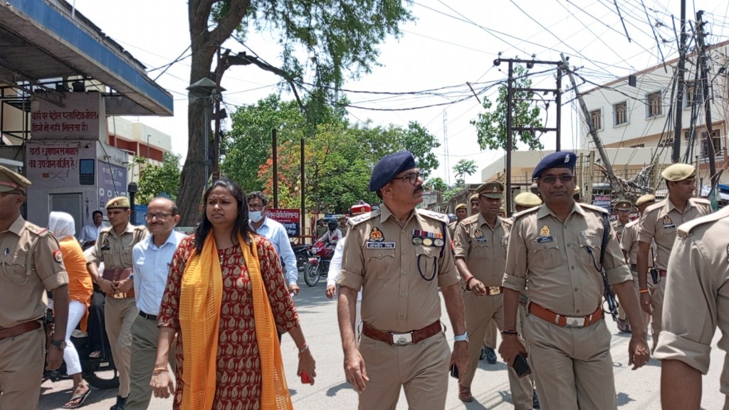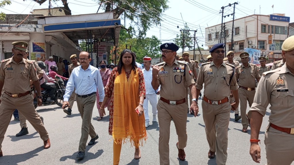 गाजीपुर। ईद-उल-फितर को लेकर जनपद में शांति एवं कानून व्यवस्था बना रहे उसके दृष्टिगत जिलाधिकारी आर्यका अखौरी ने पुलिस अधीक्षक ओमवीर सिंह के साथ शुक्रवार को शहर का भ्रमण कर स्थिति का जायजा लिया। जिलाधिकारी एवं पुलिस अधीक्षक द्वारा पढ़ी जाने वाली नमाज स्थल से रूट मार्च शूरू किया। जो मिश्र बाजार होते हुए लाल दरवाजा, कपूरपुर, एम.एस.इंटर कॉलेज नवाबगंज, मार्किंग गंज, चितनाथ घाट, स्ट्रीमर घाट, टाउन हॉल, प्रकाश टॉकीज, लाल दरवाजा, मिश्र बाजार जाकर खत्म हुआ। भ्रमण के उपरान्त जिलाधिकारी ने मस्जिद के आस-पास साफ-सफाई का जायजा लेते हुए अधिशासी अधिकारी नगर पालिका परिषद को सख्त हिदायत दी की किसी भी स्थल पर गंदगी उत्पन्न न हो एवं साफ सफाई की समुचित व्यवस्था रखे।
