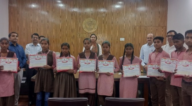 राष्ट्रीय आय एवं योग्यता आधारित छात्रवृत्ति योजना परीक्षा में सफल हुए समस्त छात्र-छात्राओं को जिलाधिकारी आर्यका अखौरी ने प्रथम, द्वितीय एवं तृतीय स्थान लाने वाले बच्चो को पुरस्कृत कर प्रशस्ति पत्र देकर सम्मानित किया। जिलाधिकारी ने कहा कि इस प्रकार की परीक्षा से बच्चो में आत्मविश्वास का सृजन होता है एवं भविष्य में और मेहनत करने के लिए प्रोत्साहित किया जाय। जिला बेसिक शिक्षा अधिकारी हेमन्त राव ने सफल विद्यार्थियों एवं अध्यापकों को शुभकामनाएं देते हुए यह कहा कि इस प्रकार की प्रतियोगिता बच्चों में प्रतिस्पर्धा की भावना को जागृत करता है जिससे उनके भविष्य को सफल बनाने में अहम् भूमिका अदा करता है। इस अवसर पर अपर जिलाधिकारी अरुण कुमार सिंह एवं मुख्य राजस्व अधिकारी द्वारा भी बच्चों को सम्मानित किया गया।