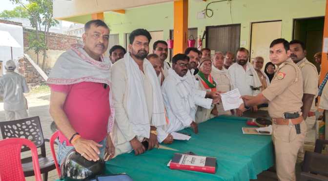 गाजीपुर। जिला कांग्रेस कमेटी के जिला अध्यक्ष सुनील राम के नेतृत्व में बुधवार को दर्जनों कार्यकर्ताओं ने सदर कोतवाली पहुंचकर कर्नाटक विधानसभा में भारतीय जनता पार्टी के प्रत्याशी मणिकांत राठोड़ के खिलाफ एक शिकायत दर्ज कराने हेतु उपनिरीक्षक शिवाकांत मिश्रा को एक लिखित तहरीर दिया। मामला कांग्रेस के राष्ट्रीय अध्यक्ष मलिकार्जुन खरगे और उनके परिजनों को जान से मारने की धमकी और साजिश रचने के आरोप से जुड़ा हुआ है। जिलाध्यक्ष सुनील राम ने अपने लिखित प्रार्थना पत्र में थानाध्यक्ष कोतवाली से यह शिकायत की है कि कर्नाटक विधानसभा चुनाव में भाजपा के उम्मीदवार मणिकांत राठोड़ ने कांग्रेस के राष्ट्रीय अध्यक्ष खरगे और उनके परिवार को जान से मारने की धमकी और अभद्र भाषा की टिप्पणी की है, जो एक संगीन अपराध है, जिसके लिए सुसंगत धाराओं में मुकदमा कायम कर गाजीपुर थाना कोतवाली की पुलिस कर्नाटक के भारतीय जनता पार्टी के उक्त प्रत्याशी मणिकांत राठोड़ पर कड़ी से कड़ी कार्यवाही करें। इस अवसर पर कांग्रेस जिलाध्यक्ष सुनील राम ने भाजपा प्रत्याशी के इस कृत्य की भर्त्सना करते हुए, इसे जानबूझ कर बोला हुआ और अहंकार में डूबा बयान बताया है। उन्होंने कहा कि चूंकि कर्नाटक में कांग्रेस से भाजपा बुरी तरह हार रही है इसलिए ऐसा बयान भाजपा के लोगों द्वारा दिया जा रहा है। इस प्रकरण पर बोलते हुए पूर्व जिलाध्यक्ष मार्कण्डेय सिंह ने इसे भाजपा नेताओं द्वारा हार की हताशा में उठाया गया कदम बताया है। उन्होंने पुलिस से मांग की है कि ऐसे लोगों के खिलाफ सख्त कानूनी कार्यवाही की जानी चाहिए। इस दौरान शहर कांग्रेस अध्यक्ष संदीप विश्वकर्मा, बटुक नारायण मिश्र, जनक कुशवाहा, अजय कुमार श्रीवास्तव, मंसूर जैदी, मनीष राय, राम नगीना पांडे, आशुतोष गुप्ता, महबूब निशा, शबीहूल हसन, आदिल अख्तर, अनुराग पांडे, विक्की यादव, अभय कुशवाहा, झुन्ना शर्मा, आशीष राय आदि लोग उपस्थित रहे।