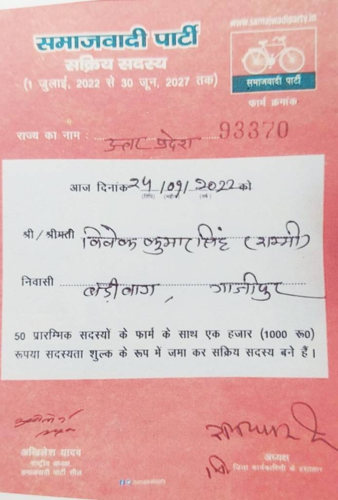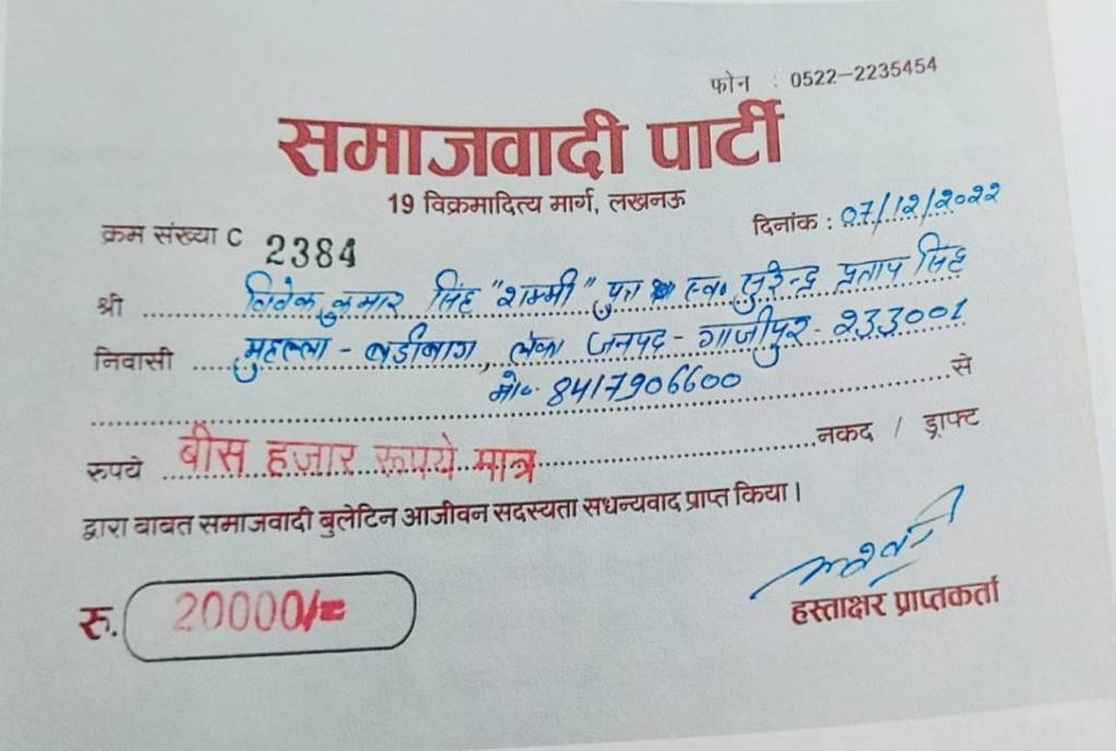 गाजीपुर।सदर विधायक जै किशन साहू के बयान पर पलटवार करते हुए विवेक सिंह शम्मी ने कहा कि अपनी हार व हताशा को छिपाने के लिए तत्कालीन जिलाध्यक्ष रामधारी यादव का फर्जी लेटर प्रेसवार्ता में दिखा रहे हैं। उन्होने बताया कि जब मैं पार्टी से निकाल दिया गया हूं तब मुझे तत्कालीन जिलाध्यक्ष रामधारी यादव 24 सितंबर 2022 को सक्रिय सदस्य का रसीद कैसे जारी कर सकते हैं। बाद में समाजवादी बुलेटिन के आजीवन सदस्य के लिए मुझे 7 दिसंबर 2022 को 20 हजार की रसीद प्रदान की गई है।शम्मी सिंह ने कहा कि वह अपनी हार स्वीकार करें और अपने वादे के अनुसार प्रदेश कार्यालय में चपरासी के पद पर कार्य करें।