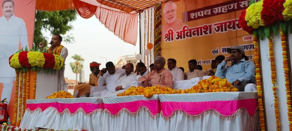 इस अवसर पर उन्होने अपने सम्बोधन में कहा कि निर्वाचन प्रक्रिया के बाद नगर पालिका परिषद गाजीपुर को जनता के मतो के आधार पर एक जिम्मेदार सरकार मिली है जिनका नेतृत्व सरिता अग्रवाल करेगी। उन्होने कहा कि आज जिस गति से हमारे प्रदेश मे शहरीकरण हो रहा है उसको ध्यान में रखते हुए नगर पालिकाओ, नगर पंचायतो, नगर निगमो मे एक रिस्पॉसिबल सरकार की आवश्यकता है। इस अवसर पर विधान परिषद सदस्य विशाल सिंह चंचल, अध्यक्ष नगर पंचायत सपना सिंह, पुलिस अधीक्षक ओमवीर सिंह, जिलाध्यक्ष भाजपा भानू प्रताप सिंह, चेयर मेन प्रतिनिधि विनोद अग्रवाल एवं पूर्व विधायक जमानिया सुनीता सिह सहित अन्य मौजूद रहे। इसी क्रम मे नगर पंचायत दिलदारनगर के नव निर्वाचित अध्यक्ष अविनाश जायसवाल सहित सभी सदस्यों को मुख्य अतिथि ओम प्रकाश राय की मौजूदगी में उप जिलाधिकारी सेवराइ ने शपथ दिलाई। शपथ ग्रहण समारोह में 11 वार्ड के सभासद नाजरीन, सपा से मिथिलेश, बीजेपी दीपक गुप्ता, इमरान, तबरेज, बीजेपी सपना देवी, मीना, सुरेंद्र, हदीसुन बेगम एवं प्रदीप कुमार वर्मा सहित सभासद राजेश जायसवाल