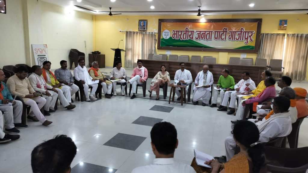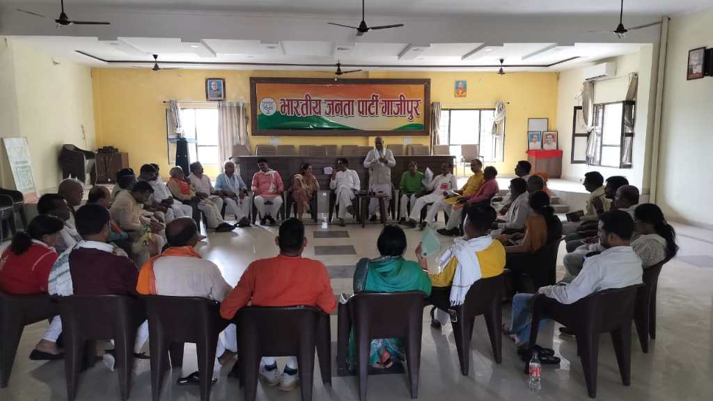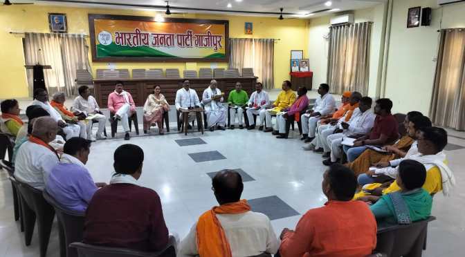 गाजीपुर। प्रधानमंत्री नरेन्द्र मोदी के नेतृत्व में केंद्र सरकार के आज 9 वर्ष पुर्ण होने पर 30 मई से 30 जून के बीच लोकसभा, विधानसभा एवं शक्ति केन्द्र स्तर पर होने वाले कार्यक्रमों के अभियान प्रमुखों कि बैठक भारतीय जनता पार्टी जिला कार्यालय पर जिलाध्यक्ष भानुप्रताप सिंह की अध्यक्षता में सोमवार को हुई। बैठक को संबोधित करते हुए जिला पंचायत अध्यक्ष सपना सिंह ने कहा कि यह देश का सौभाग्य है कि, प्रधानमंत्री के रूप में विगत 9 वर्षो से नरेंद्र मोदी जैसा नेता देश कि बागडोर सफलता से संभाला है। जिनके नेतृत्व में देश कि बुनियादी जरूरतों एवं समस्याओं पर प्रभावी सफलता अर्जित कर सम्मान के क्षेत्र में अतुलनीय ख्याति अर्जित किया है। लोकसभा संयोजक पुर्व जिलाध्यक्ष कृष्ण बिहारी राय ने कहा कि योग्य कुशल विचार सम्पन्न नेता के नेतृत्व मे स्थिर बहुमत कि सरकार के पास मजबूत निर्णय लेने कि क्षमता निहित होती हैं।