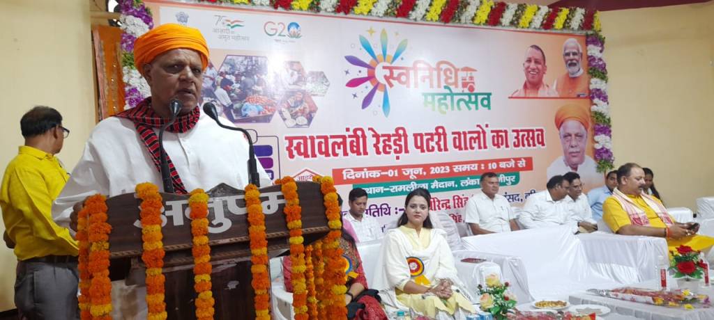 गाजीपुर। पीएम स्वनिधि योजना के अन्तर्गत एक जून को स्वनिधि महोत्सव का आयोजन किया गया। मुख्य अतिथि सांसद बलिया वीरेन्द्र सिंह मस्त, विशिष्ट अतिथि जिला पंचायत अध्यक्ष सपना सिंह, जिलाधिकारी आर्यका अखौरी एवं अपर जिलाधिकारी वि0रा0 अरूण कुमार सिंह ने लंका मैदान सभागार मे पी एम स्वनिधि महोत्सव कार्यक्रम का शुभारम्भ फीटा काटकर एवं दीप प्रज्ज्वलित कर किया। कार्यक्रम से पूर्व ही मुख्य अतिथि ने विभिन्न बैको, स्वयं सेवी संस्थानो, बाल विकास सेवा एवं पुष्टाहार विभाग सहित अन्य विभागो द्वारा लगाये गये स्टालो का निरीक्षण कर जानकारी ली। सांसद वीरेन्द्र सिंह मस्त ने अपने सम्बोधन मे कहा कि पी एम स्वनिधि योजना पूरे देश के गॉव, कस्बो, पटरी पर लगाने वाले ठेला, खुमचा आदि छोटे दुकानदानो की समृद्धि के लिए यह योजना कार्य कर रही है। उन्होने कहा कि यह योजना ग्रामीण अर्थ व्यवस्था के शक्तिशाली होने का आधार बनेगा और इसी रास्ते से होकर आत्म निर्भर भारत का रास्ता निकलेगा।