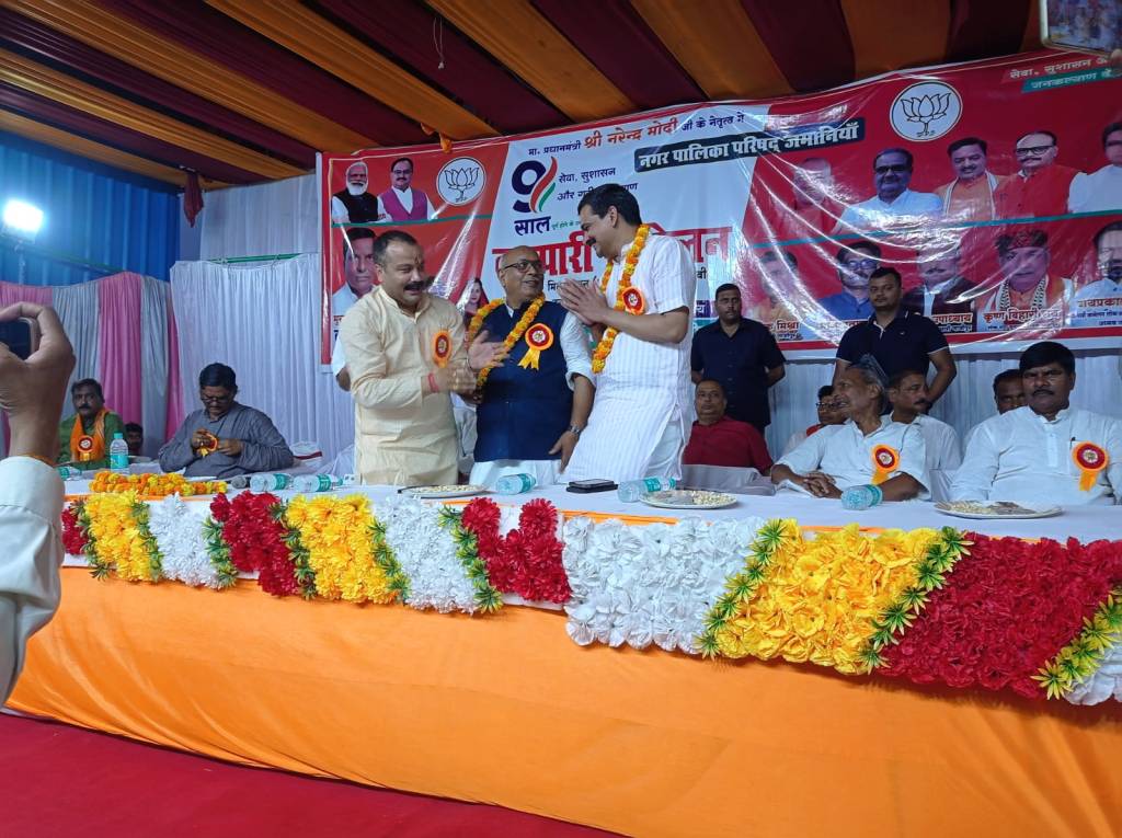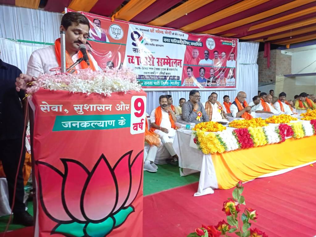 गाजीपुर। मोदी सरकार के 9 वर्ष पूरे होने पर जमानिया क्षेत्र के मिलन लॉन में बुधवार को व्यापारी सम्मेलन का आयोजन किया गया। इस व्यापारी सम्मेलन में वाराणसी के पूर्व जिला पंचायत अध्यक्ष कन्हैया लाल गुप्ता मौजूद रहे। कार्यक्रम में दिलदारनगर के नगर पंचायत अध्यक्ष अविनाश जायसवाल सहित सभी चेयरमैनो ने एमएलसी विशाल सिंह चंचल का माल्यार्पण कर स्वागत किया।