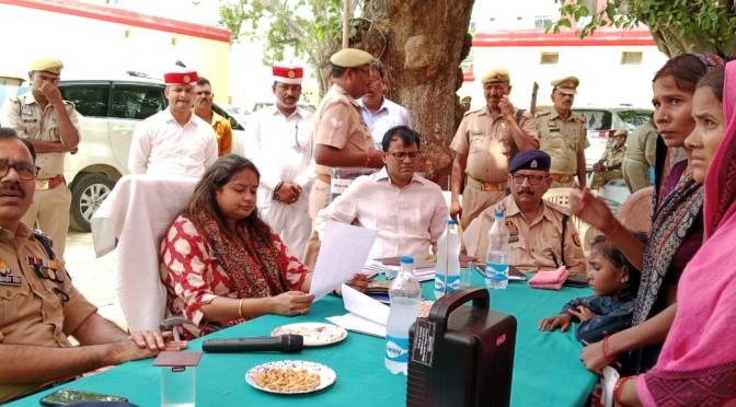 गाजीपुर। शासन के निर्देश के क्रम में आज द्वितीय शनिवार को थाना दिवस के अवसर पर जिलाधिकारी आर्यका अखौरी एवं पुलिस अधीक्षक ओमवीर सिंह की अध्यक्षता में थाना नंदगंज में उपस्थित फरियादियों की फरियाद सुनी साथ ही शिकायतो को जल्द से जल्द निस्तारण के लिए प्रशासनिक एवं पुलिस अधिकारियों को निर्देश दिया। थाना दिवस पर मौके पर 23 फरियादियों ने अपनी-अपनी शिकायतो को लिखित रूप में दिया जिसमें से 3 का मौके पर निस्तारण किया गया। शेष आवेदन का निस्तारण हेतु सम्बन्धित अधिकारी को दिया। जिलाधिकारी ने निर्देश दिया कि भूमि पर अवैध कब्जा करने वाले भू माफियाओ के विरूद्ध एन्टी भू माफिया एक्ट के अन्तर्गत मुकदमा पंजीकृत करते हुए कड़ी कार्यवाही करे और गरीबो के पट्टे आदि की भूमि पर कब्जा करने वालो के खिलाफ केस दर्ज कर जेल भेजा जाय। उन्होने निर्देश दिया कि लेखपाल एवं हल्का सिपाही आपसी सामन्जस्य स्थापित करते हुए एक-दूसरे का मो0नम्बर अपने पास रखे तथा टीम बनाकर प्राप्त शिकायतो का स्थलीय निरीक्षण करते हुए निस्तारण करे। उन्होने सख्त निर्देश दिया कि शिकायतो का निर्धारित समय में निस्तारण न किये जाने पर सम्बन्धित लेखपाल एवम पुलिस अधिकारी पर अनुशासनात्मक कार्यवाही सुनिश्चित की जायेगी। इस मौके पर उपजिलाधिकारी सैदपुर, क्षेत्राधिकारी सैदपुर, थाना प्रभारी, लेखपाल एंव अन्य अधिकारीगण एवं पुलिस विभाग से सम्बन्धित अधिकारी कर्मचारी उपस्थित रहे।