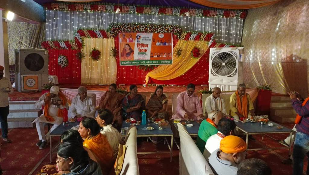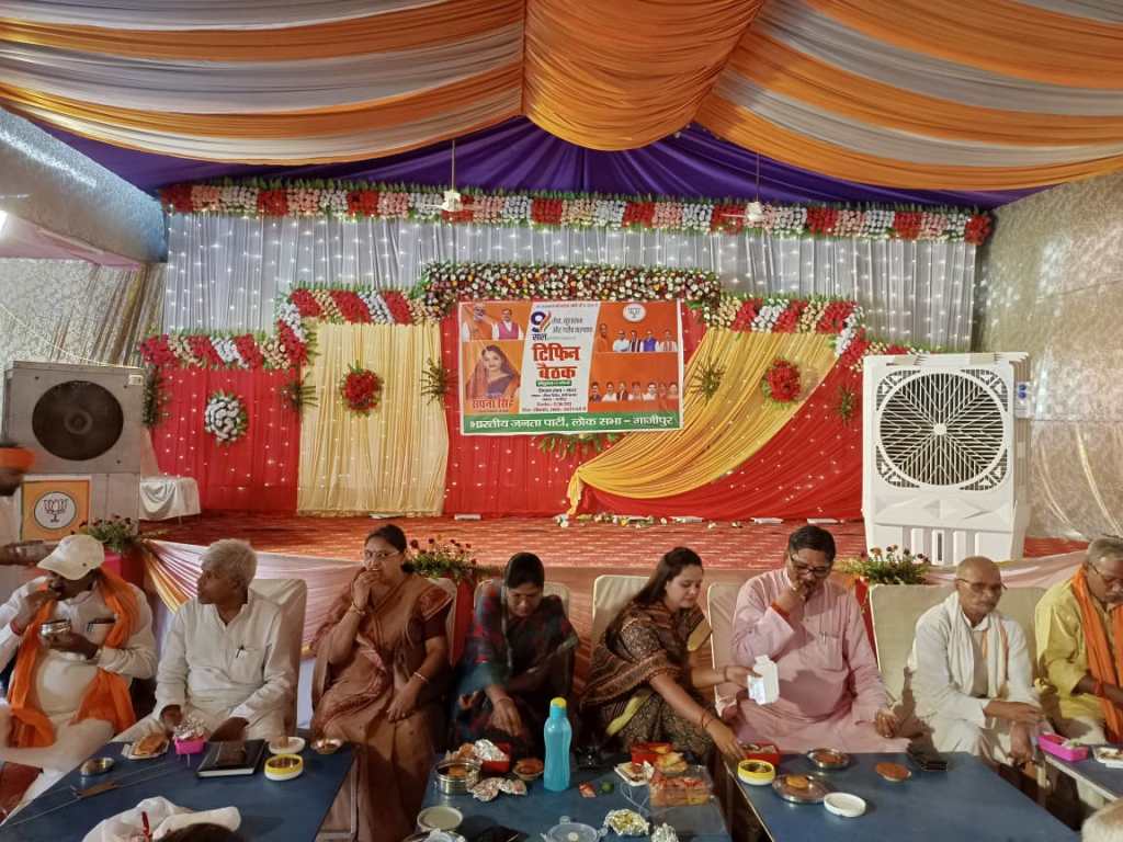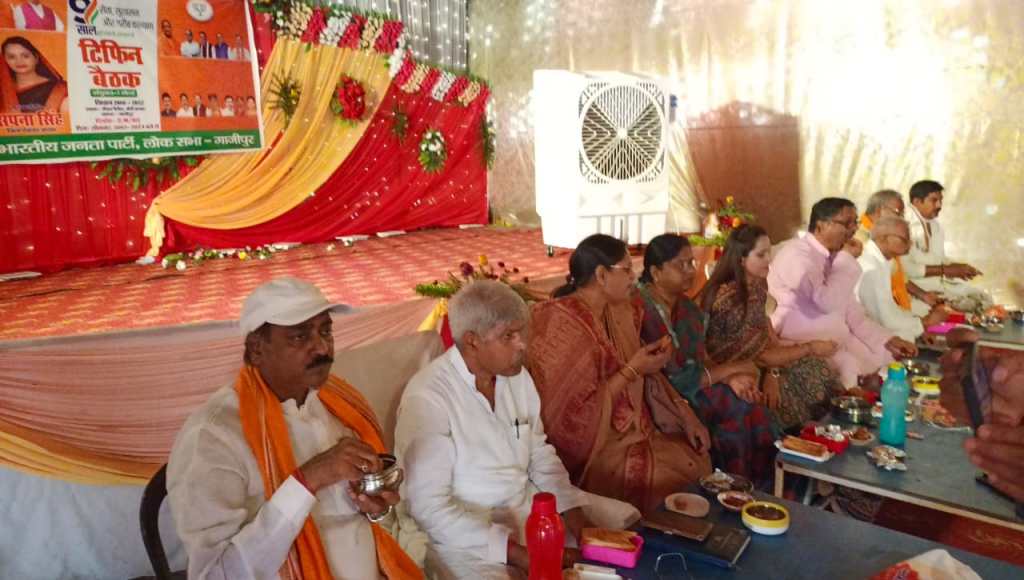 गाजीपुर। भारतीय जनता पार्टी ख़ान पान के साथ आम कार्यकर्ताओं से बात चीत करने के लिए लगातार टिफिन बैठक कर रही है। कल सैदपुर विधानसभा में हुई टिफिन बैठक के बाद जिलाध्यक्ष भानु प्रताप सिंह के नेतृत्व मे भाजपा कार्यकर्ताओं ने सोमवार को सदर विधानसभा में नगर स्थित रायल पैलेस के सभाकक्ष मे टिफिन बैठक किया। भाजपा जिलाध्यक्ष भानुप्रताप सिंह, जिला पंचायत अध्यक्ष सपना सिंह सहित सभी पदाधिकारियों और वरिष्ठ नेताओं ने पार्टी कार्यकर्ताओं के साथ दोपहर मे टिफिन बैठक किया और यह संदेश दिया कि भारतीय जनता पार्टी ने देश कि राजनीति में विशिष्टता कि श्रेणी को दरकिनार कर दिया है। आम कार्यकर्ता और पार्टी के नेता एक साथ बैठकर अपने अपने टिफिन के खाद्य सामग्री को एक दूसरे से बांटकर एक से बढकर एक लाजबाव व्यंजनों का स्वाद लिया और देश में प्रधानमंत्री नरेन्द्र मोदी के नेतृत्व में चल रही सेवा, सुशासन और गरीब कल्याण के नौ वर्षों के राष्ट्र के लिए अतुलनीय कार्यों पर चर्चा करते हुए देश के लिए उपलब्धियों भरा बताया।