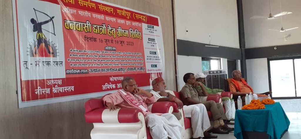 गाज़ीपुर। अखिल भारतीय वनवासी कल्याण आश्रम से संबद्ध सेवा समर्पण संस्थान बयेपुर देवकली में तीन दिवसीय ग्रीष्म कालीन शिविर का आयोजन शुक्रवार को किया गया। यह वनवासी समुदाय के बच्चों के सर्वांगीण विकास के लिए शिविर का आयोजन किया गया है। सेवा समर्पण संस्थान में कार्यक्रम की शुरुआत सर्वप्रथम मां सरस्वती की प्रतिमा पर माल्यार्पण व दीप पज्जवलित करके किया गया। शिविर में जिले के पन्द्रह गांव के 60 बच्चे हिस्सा ले रहे है। मुख्य अतिथि एसपी सिटी ज्ञानेंद्र ने शिविर के उद्देश्यों की काफी सराहना किए। उनका कहना था कि इस प्रकार के कार्यक्रम में वह सदैव उपस्थित रहने के लिए तैयार है। ज्ञात हो कि जिले में बनबासी समुदाय की आबादी लगभग 55 हजार के आस-पास है। विभिन्न गांवों में इनकी लगभग 456 बस्तियां है। वनवासी समुदाय के लोग मेहनतकस होते है।