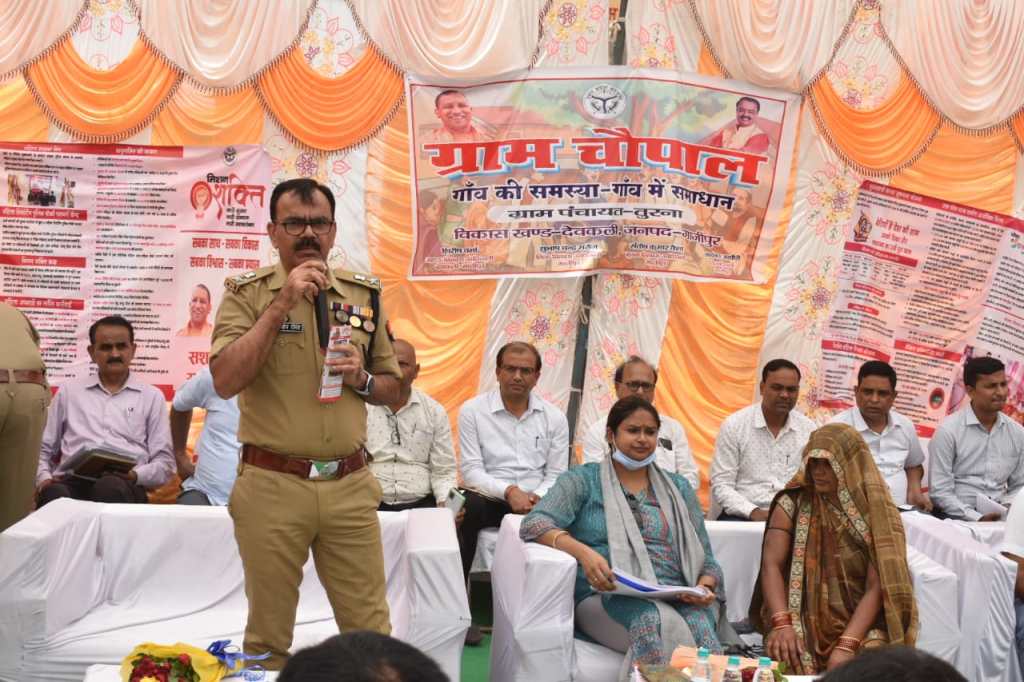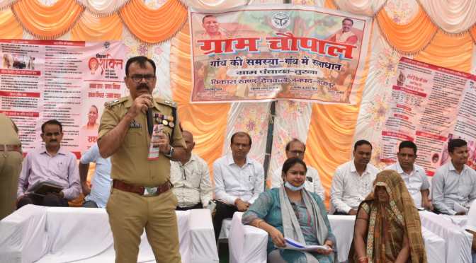 गाजीपुर। मिशन शक्ति के तहत थाना नंदगंज के ग्राम पंचायत तुरना के पंचायत भवन पर शुक्रवार को जिलाधिकारी आर्यका अखौरी और पुलिस अधीक्षक ओमवीर सिंह ने जन चौपाल का आयोजन किया। इस चौपाल में पुलिस अधीक्षक ने गांव की बच्चियों तथा महिलाओं को मिशन शक्ति, नारी सुरक्षा, नारी सम्मान, नारी स्वावलंबन कार्यक्रम के बारे में जागरूक किया। कहा कि बच्चियों एवं महिलाओं को उनके प्रति होने वाले किसी भी अपराध एवं संबंधित अपराधियों के बारे में तत्काल पुलिस एवं शक्ति मित्र महिला पुलिसकर्मियों को सूचना देने के लिए कहा जिससे अपराध और अपराधियों पर लगाम लगाया जा सके।