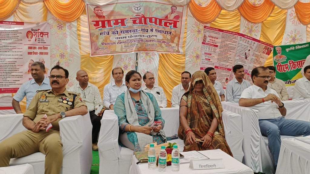 इस अवसर पर ग्रामीणों की समस्याओं को सुनते हुए पेंशन योजना का लाभ दिलाये जाने के संबंध में निर्देशित किया गया। उन्होने अधिकारियों को निराश्रित, विधवा एवं वृद्धावस्था पेंशन के पात्र लाभार्थियों का चयन करते हुए पेंशन का लाभ दिलाए जाने का निर्देश दिया। चौपाल मे प्राथमिक विद्यालय में बच्चों को अध्यापकों द्वारा दी जा रही शिक्षा की गुणवत्ता/स्तर के संबंध में भी खुली चौपाल के दौरान ग्राम वासियों से सत्यापन किया गया। प्रधानाचार्य एवं अध्यापकों को निर्देशित किया गया कि 26 जून से स्कूल खुल रहे है एवं स्कूल चलो अभियान के अन्तर्गत घर-घर जाकर अभिभावकों को प्रेरित कर विद्यालय में नामांकन कराया जायें। उन्होंने ग्रामीणों से भी अपील की कि अपने बच्चों का नामांकन विद्यालय में करायें। बैठक में हैंडपंप रिबोर, छात्रवृत्ति, मनरेगा आदि कार्याे के बारे में भी सत्यापन किया गया। व्यक्तिगत शौचालय के पात्र लाभार्थियों का आनलाईन आवेदन कराने का निर्देश सम्बन्धित अघिकारियों को दिया। बाल विकास की समीक्षा मे दौरान गर्भवती महिलाओं के स्वास्थ्य परीक्षण तथा पुष्टाहार वितरण तथा कोटेदार द्वारा समय से राशन बाटने एवं विजली की उपलव्धता के सम्बन्ध में जानकारी ली। कार्यक्रम मे अन्त मे मुख्य विकास अधिकारी ने ग्रामों मे संचालित सभी योजनाओं के बारे मे विस्तार से लोगो को अवगत कराया तथा अन्य विभागो के अधिकारियों ने अपने-अपने विभाग से सम्बन्धित योजनाओं के बारे मे लोगो को जानकारी दी। इस अवसर पर पुलिस अधीक्षक ओमवीर सिंह, मुख्य विकास अधिकारी संतोष कुमार वैश्य, उपजिलाधिकारी सैदपुर, उप निदेशक कृषि, जिला पूर्ति अधिकारी, जिला दिव्यांग कल्याण अधिकारी, उपायुक्त उद्योग, खण्ड विकास अधिकारी देवकली, समाज कल्याण अधिकारी, मुख्य पशु चिकित्सा अधिकारी, जिला अल्पसंख्यक कल्याण अधिकारी, डी0पी0ओ0, जिला पंचायत राज अधिकारी एवं अन्य जनपद स्तरीय अधिकारी, कर्मचारी उपस्थित थे।