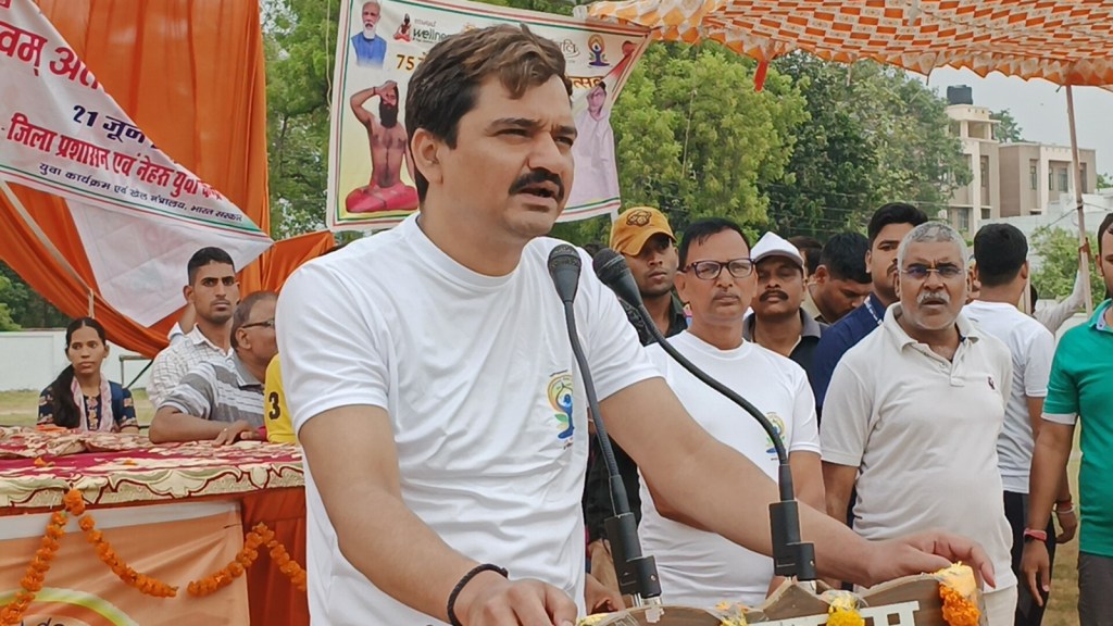 उन्होने कहा कि उपभोक्तावादी समाज में जब व्यक्ति ने अपने आपको प्रतियोगी के बजाय प्रतिस्पर्धी बना लिया हो और अपने जीवन को यन्त्रवत ढाल लिया हो ऐसी स्थिति में उसके जीवन में निराशा, अवसाद और बीमारियां लगातार घर करती जा रही है, उन्होने कहा कि आज पूरा विश्व योग दिवस मना रहा है, इसका श्रेय हमारे यशस्वी प्रधानमंत्री नरेन्द्र मोदी को जाता है, हमारे प्रधानमंत्री की सोच का दायरा इतना विस्तृत है कि उन्होंने मानवीय पहलू पर विचार करने के उपरान्त ही योग दिवस की शुरूआत की, उन्होंने बताया है कि योग से मानव किस तरह से अपने जीवन को सुरक्षित रख सकता है, आज के विषम परिस्थितियों में जब आदमी की सोच बदल गयी है, खान-पान बदल गया है, रहन-सहन बदल गया है, इस भौतिकता के युग में हम पाश्चात्य संस्कृति को अपनाते जा रहे हैं, जो जीवन के लिए अत्यन्त घातक है, योग दिवस हमे बतलाता है कि व्यक्ति को सूर्यादय के पूर्व उठना चाहिए, नियम, संयम को अपने जीवन में अत्यधिक महत्व देना चाहिए तभी व्यक्ति स्वस्थ्य रह सकता है।