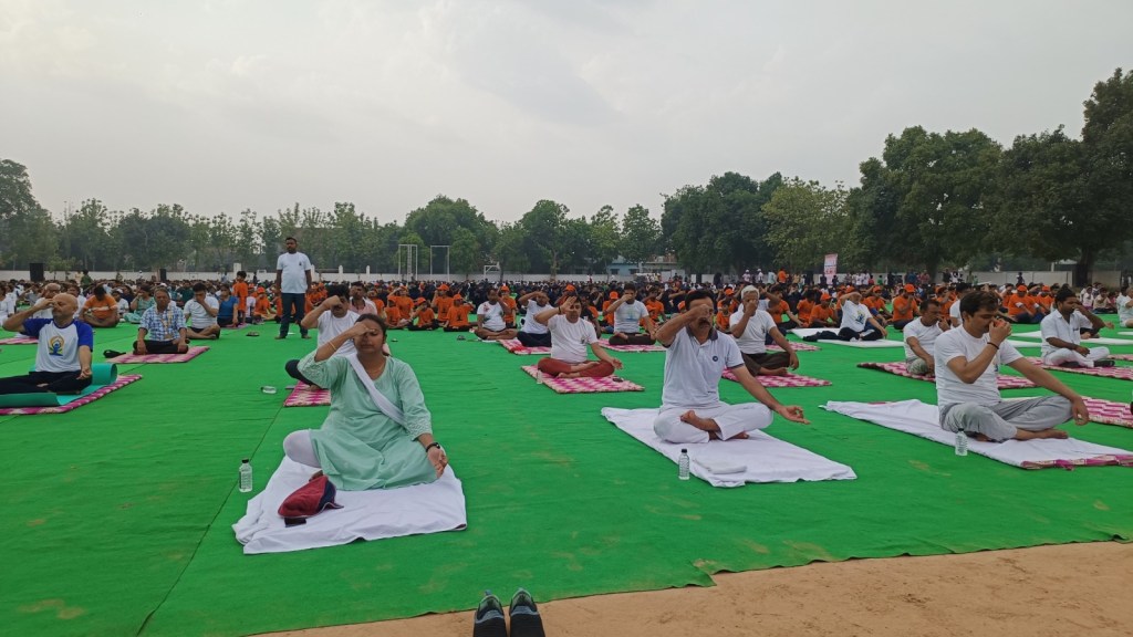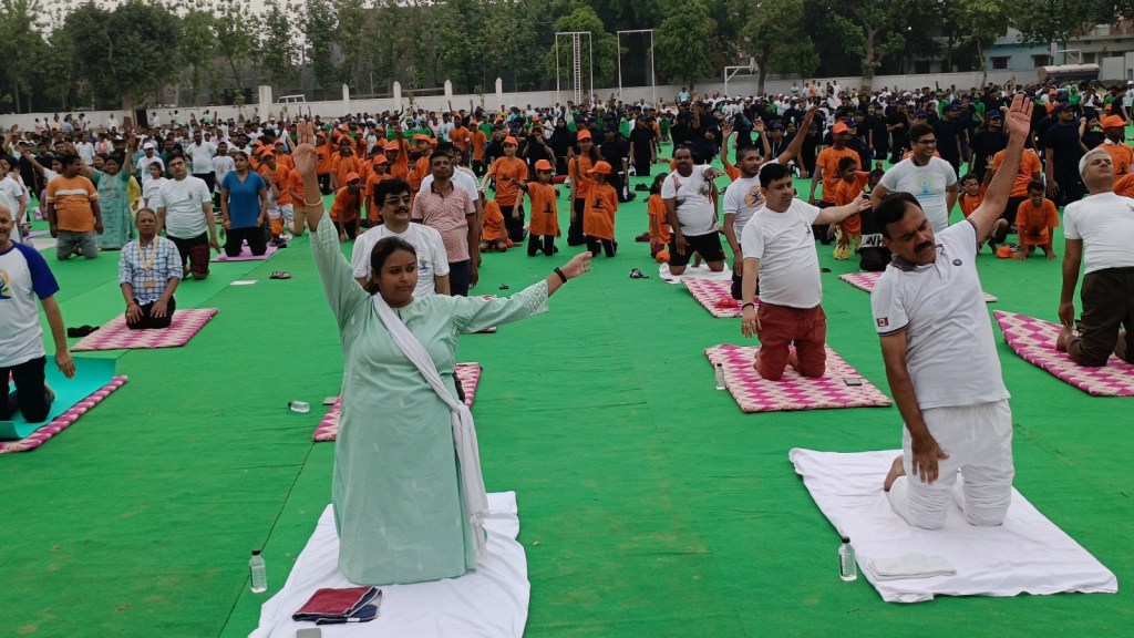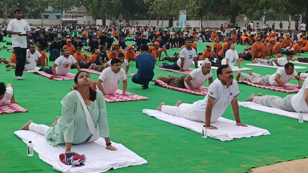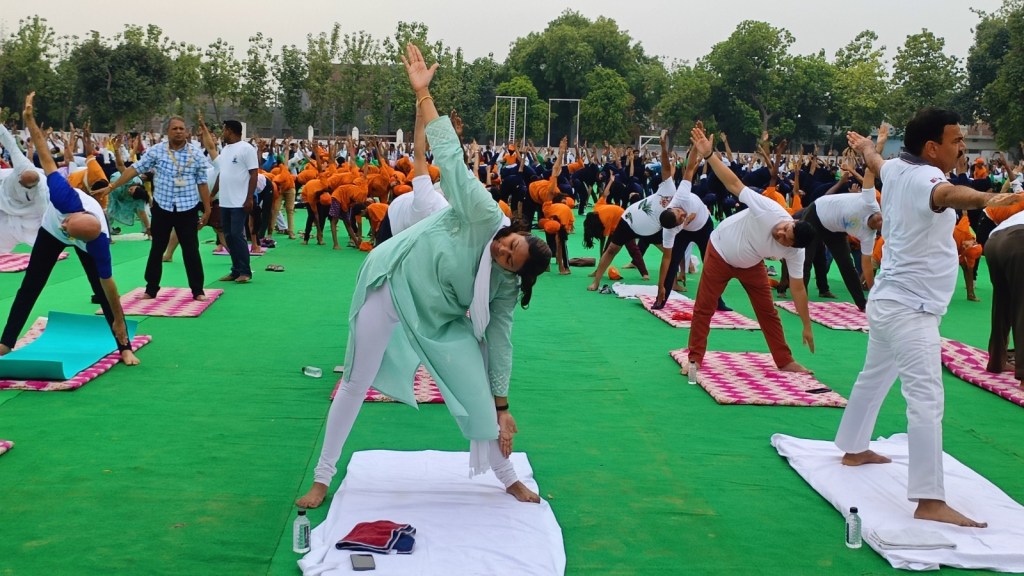 गाजीपुर।बुधवार को जनपद के विभिन्न भागों में नवम् अन्तर्राष्ट्रीय विश्व योग दिवस ‘‘हर घर आंगन योग‘‘ भव्य रूप से मनाया गया । जनपद में उत्साह, उल्लास, एवं उमंग के साथ नवम् अंन्तर्राष्ट्रीय योग दिवस-2023 का भव्य कार्यक्रम आयोजित हुए। जिला मुख्यालय पर पुलिस लाइन परेड ग्राउंड में बड़ी तादात में लोग शामिल हुए। इसी के साथ तहसील, ब्लाक, समस्त ग्राम पंचायतो व विभिन्न सरकारी व निजी संस्थानों में भी योग दिवस का आयोजन हुआ। कार्यक्रम का सफल संयोजन क्षेत्रीय आयुर्वेदिक एवं यूनानी अधिकारी डा. जयंत कुमार ने किया।