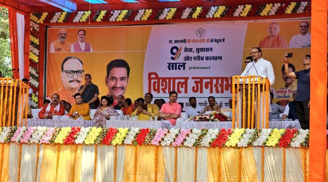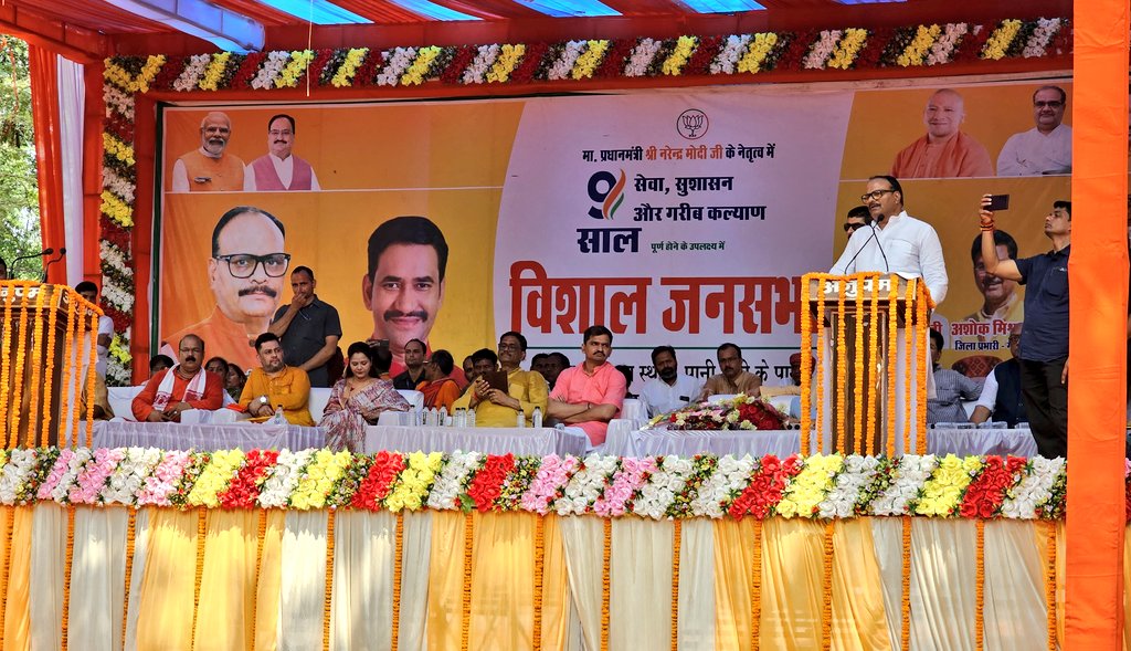 गाजीपुर। (जखनियां) उत्तर प्रदेश सरकार के उपमुख्यमंत्री बृजेश पाठक प्रधानमंत्री नरेन्द्र मोदी के सेवा, सुशासन, गरीब कल्याण के नौ वर्ष के उपलब्धियों को लेकर अलीपुर मंदरा ग्राम के हडौरा डिह बाबा स्थान पर पानी टंकी के पास बगीचे में गुरूवार को एक विशाल जनसभा को संबोधित करते हुए कहा कि प्रधानमंत्री नरेन्द्र मोदी ने नौ वर्षों में गरीब कल्याण के लिए सैकड़ों योजनाएं लाकर हर गरीब का सपना पूरा किया है। दुनिया मे भारत एक ताकतवर राष्ट्र के रूप में उभर रहा है, हर गरीब के पक्के मकान का सपना मोदी जी ने पूरा किया। वहीं उन्होंने कहा कि जब हमारी माताएं बहने शाम को शौच के लिए जातीं थीं विषम परिस्थितियों का सामना करतीं थीं। आज मोदी जी ने उन्हें शौचालय देकर उनका सम्मान किया है। कोई गंभीर बीमारी होने पर गरीब माताओं, बहनों के गहने तथा खेत या तो बिक जाते थे या तो गिरवी रख दिया जाता था। आज आयुष्मान भारत योजना के माध्यम से 5 लाख तक के चिकित्सा का लाभ उनको मिल रहा। उन्होंने कहा कि काया कल्प योजना के माध्यम से देश के सभी स्कूलों में सुधार हुआ है। आज हमारे पास 1 करोड़ 92 लाख प्राथमिक विद्यालय है और उन सभी विद्यालयों को प्राइवेट स्कूलों से बेहतर बनाया जा रहा है। बिजली पर उन्होने कहा कि पहले बिजली सिर्फ सैफई और इटावा को मिलती थी, आज प्रदेश के 75 के 75 जिलों को बिजली बराबर मिल रही है।