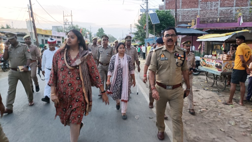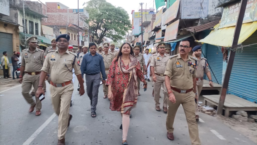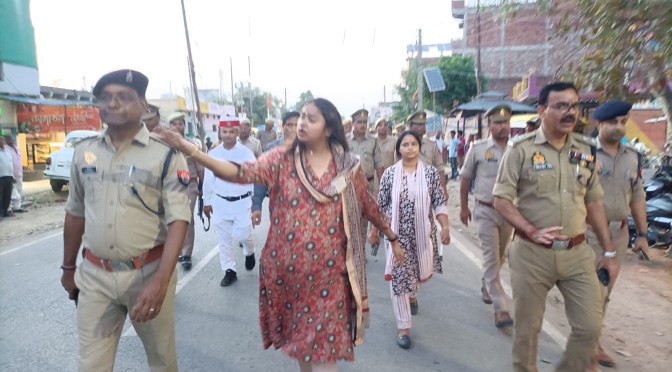 गाजीपुर। आगामी बकरीद, श्रावण मास एवं मुहर्रम के त्यौहार को शांतिपूर्ण मनाये जाने को लेकर सोमवार को जिलाधिकारी आर्यका अखौरी और पुलिस अधीक्षक ओमवीर सिंह ने अधिकारियो और भारी पुलिस बल के साथ जंगीपुर क्षेत्र के विभिन्न मार्गाे पर रूट मार्च कर त्यौहार को शान्तिपूर्ण ढंग से मनाने की अपील की। अधिकारीयों ने जंगीपुर यादव मोड़ से जंगीपुर बाजार होते हुए जंगीपुर मण्डी तक रूट मार्च कर लोगो से आपसी सौहार्द के साथ त्यौहार मनाने की अपील की। उन्होने कहा कि श्रवाण मास में काफी संख्या में श्रद्धालु/कावड़ यात्रियों की भीड़-भाड़ एवं मुख्य मंदिरो पर जलाभिषेक हेतु आवागमन होता है। वकरीद पर सार्वजनिक नमाज एवं मोहर्रम में जुलूस एवं ताजिये निकलते है जो अपने पूर्व की भॉति ही सम्पन्न होगा। कोई भी नये कार्य नही किये जायेगे। उपद्रवियों पर पुलिस की पैनी नजर रहेगी। उन्होने जनमानस से अपील करते हुए कहा कि किसी भी अफवाह पर ध्यान न देते हुए आपसी भाई चारे के साथ त्यौहार को मनाये। इस अवसर पर उपजिलाधिकारी सदर प्रतिभा मिश्रा, एस पी सिटी, क्षेत्राधिकारी सदर एवं अन्य अधिकारी उपस्थित थे।