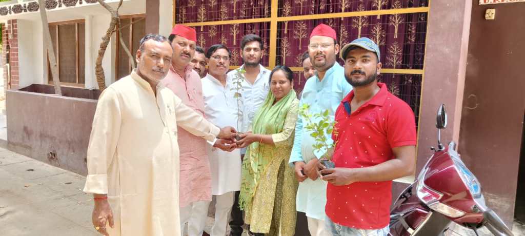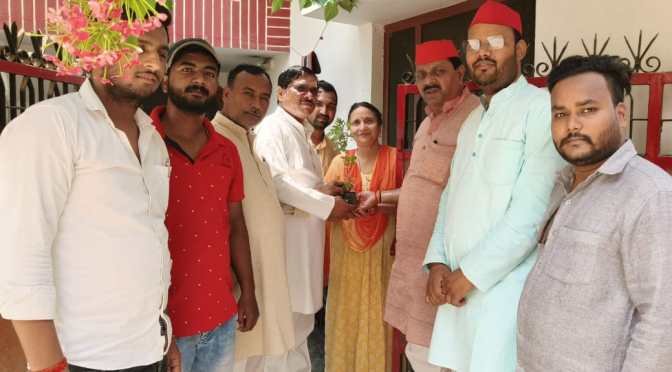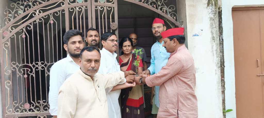 पूर्व राज्य मंत्री ने पद यात्रा कर अखिलेश के जन्मदिन पर कई दर्जन बाटे तुलसी के पौधे