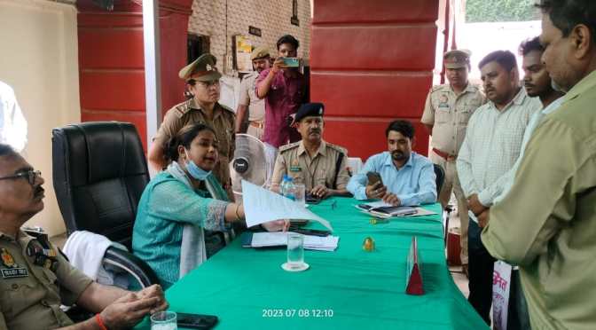 गाजीपुर। शासन के निर्देश पर द्वितीय, शनिवार को थाना दिवस के अवसर पर जिलाधिकारी आर्यका अखौरी एवं पुलिस अधीक्षक ओमवीर सिंह की अध्यक्षता में थाना कोतवाली सैदपुर में उपस्थित फरियादियों की फरियाद सुनी साथ ही शिकायतो को जल्द से जल्द निस्तारण के लिए प्रशासनिक एवं पुलिस अधिकारियों को निर्देश दिया। थाना दिवस पर कोतवाली सैदपुर मे 12 फरियादियों ने अपनी-अपनी शिकायतो को लिखित रूप में दिया जिसमें से 4 का मौके पर निस्तारण किया गया। शेष आवेदन का निस्तारण हेतु सम्बन्धित अधिकारी को निर्देश दिया। जिलाधिकारी ने निर्देश दिया कि भूमि पर अवैध कब्जा करने वाले भू माफियाओ के विरूद्ध एन्टी भू माफिया एक्ट के अन्तर्गत मुकदमा पंजीकृत करते हुए कड़ी कार्यवाही करे और गरीबो के पट्टे आदि की भूमि पर बार-बार कब्जा करने वालो के खिलाफ केस दर्ज कर जेल तत्काल भेजा जाय। उन्होने निर्देश दिया कि लेखपाल एवं हल्का सिपाही आपसी सामन्जस्य स्थापित करते हुए एक-दूसरे का मो0नम्बर अपने पास रखे तथा टीम बनाकर प्राप्त शिकायतो का स्थलीय निरीक्षण करते हुए निस्तारण करे। उन्होने सख्त निर्देश दिया कि शिकायतो का निर्धारित समय में निस्तारण न किये जाने पर सम्बन्धित लेखपाल एंव सिपाही पर अनुशासनात्मक कार्यवाही सुनिश्चित की जायेगी। इस मौके पर उपजिलाधिकारी सैदपुर, क्षेत्राधिकारी सैदपुर, थाना प्रभारी, लेखपाल एंव अन्य अधिकारीगण एवं पुलिस विभाग से सम्बन्धित अधिकारी कर्मचारी उपस्थित रहे।