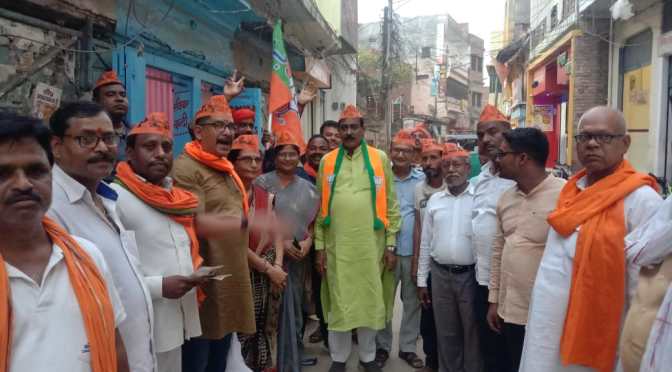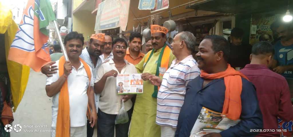 गाजीपुर। मंगलवार को भाजपा नगर के कार्यकर्त्ताओं ने नगर पालिका परिषद की अध्यक्ष सरिता अग्रवाल के नेतृत्व में स्टीमर घाट, चीतनाथ एवं नखास क्षेत्र में व्यापक जनसम्पर्क करके भारतीय जनता पार्टी के ‘‘महा जनसम्पर्क अभियान’’ के अन्तर्गत ‘‘घर घर जनसम्पर्क’’ कर लोगों से 9090902024 पर मिस्ड कॉल कराकर मोदी को समर्थन दिलाया गया। इस अवसर पर न0पा0प0 की अध्यक्ष सरिता अग्रवाल ने लोगों से मोदी सरकार की 9 वर्ष की उपलब्धियों की चर्चा करते हुए कहा कि सेवा, सुशासन और गरीब कल्याण के 9 वर्ष पूरे होने पर भारतीय जनता पार्टी ने महा सम्पर्क अभियान चलाकर आम जनता से मिलने का कार्यक्रम जो दिया है वह प्रशंसनीय है। आम जनता में मोदी सरकार के प्रति लोगों का व्यापक समर्थन मिल रहा है और लोग खुशी मन से 2024 में फिर से नरेन्द्र मोदी को प्रधानमंत्री बनाने हेतु तैयार है।
