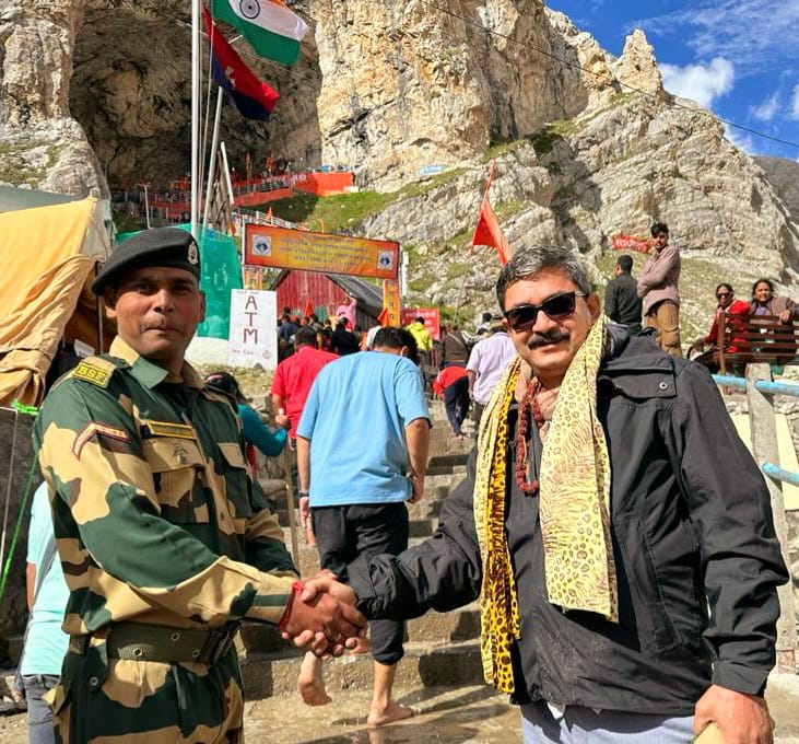 गाजीपुर। लगातार कई वर्षों से पूर्व मंत्री विजय मिश्रा अनवरत पवित्र शिवलिंग अमरनाथ बाबा का दर्शन कर रहे हैं। इस वर्ष भी उन्होंने बाबा बर्फानी का दर्शन करके देश-प्रदेश और जनपदवासियों के सुख-शांति और समृद्धि की प्रार्थना की। बता दें कि सोमवार को पूर्व मंत्री विजय मिश्रा अमरनाथ पहुंचे। यहां उन्होंने बाबा बर्फानी के दर्शन किए। यहां गुफा में मौजूद पुजारियों ने पूर्व मंत्री के हाथों भगवान भोलेनाथ का पूजन करवाया। इस दौरान अमरनाथ गुफा मंत्रों से गूंज उठी। विधि विधान से पूजन करवाने के बाद पुजारियों ने उन्हें प्रसाद और आशीर्वाद भी दिया। उन्होंने दर्शनार्थियों के लिए बेहतर व्यवस्था उपलब्ध कराने के लिए जम्मू कश्मीर के उपराज्यपाल मनोज सिन्हा से भेंट कर सफल आयोजन के लिए बधाई दी। साथ ही भारतीय सेना, बीएसफ, सीआरपीएफ और जम्मू कश्मीर पुलिस के जवानों का आभार व्यक्त किया।
