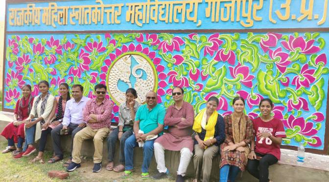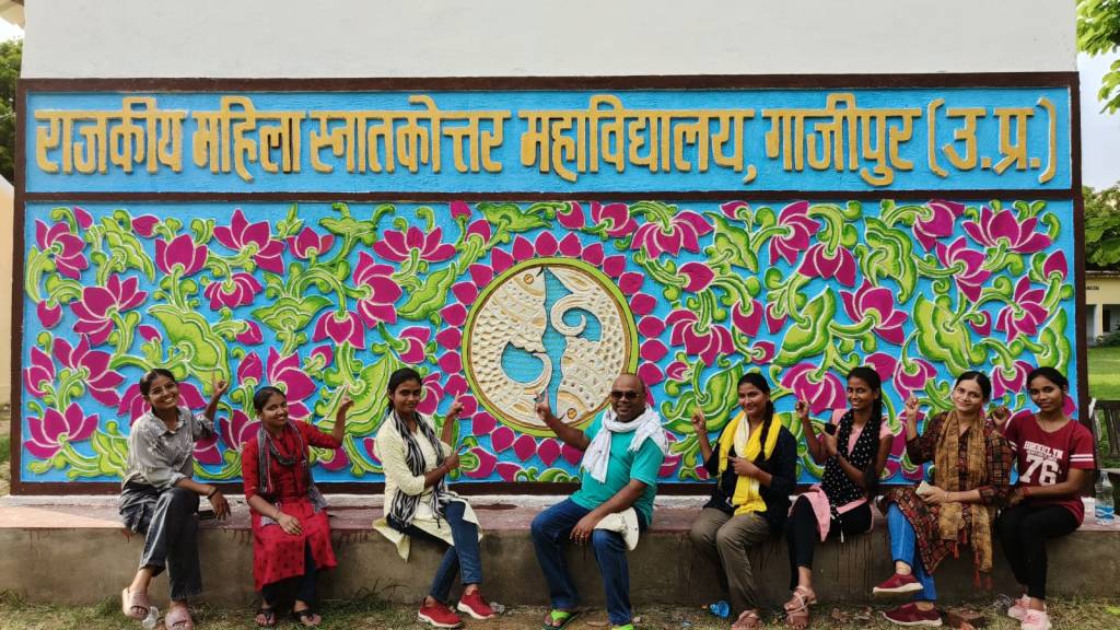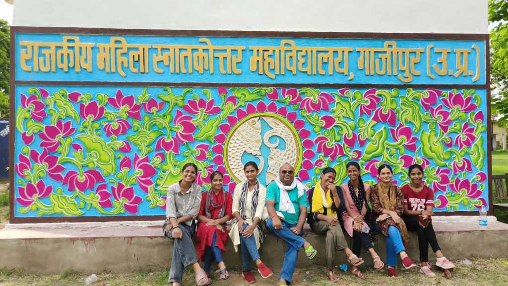 गाजीपुर। राजकीय महिला महाविद्यालय अपने शिक्षार्थियों के लिए नए-नए प्रकार के, अनूठे अधिगम प्रयोग करता रहता है। इसका एक बेहतरीन नमूना है महाविद्यालय की दीवाल पर निर्मित म्यूरल पेंटिंग। म्यूरल मतलब रंगों की मदद से दीवारों पर उकेरे गए ऐसे चित्र जो बिल्कुल जीवंत लगते हैं। युवा शिक्षार्थी जो सोशल मीडिया पर सक्रिय रहते हैं उनके लिए महाविद्यालय की छवि को एक नए रूप में अनुभूत कराने के लिए चित्रकला विभाग के प्रोफेसर उमाशंकर प्रसाद ने महाविद्यालय के नाम को आकर्षक ढंग से एक भित्ति चित्र के रूप में उकेरने की योजना बनाई और इसे अपने चित्रकला विभाग की छात्राओं के साथ साकार किया। फरवरी-मार्च माह में छात्राओं ने इसे प्रो उमाशंकर प्रसाद के साथ मिलकर दीवाल पर चित्र उकेरा और जुलाई में इसका रंग रोगन कर इसे जीवंत रूप में प्रस्तुत किया।
