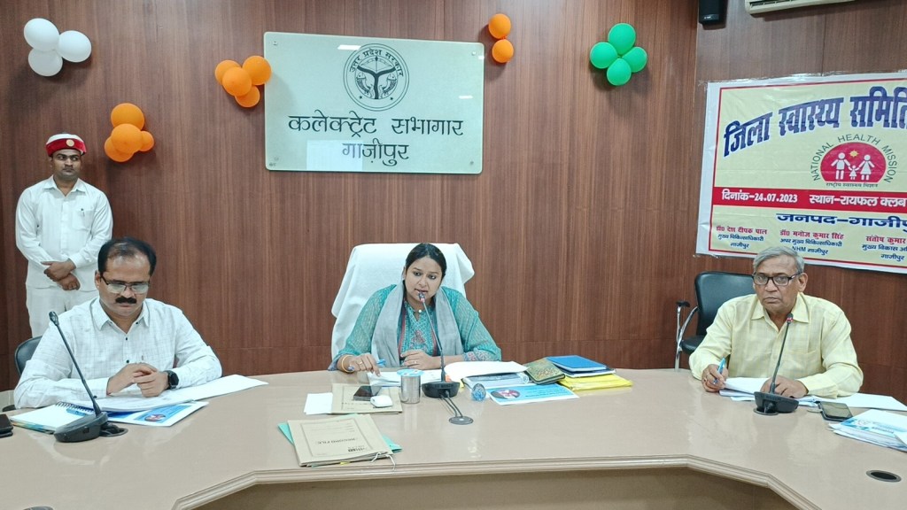 गाजीपुर। जिलाधिकारी आर्यका अखौरी की अध्यक्षता में जिला स्वास्थ्य समिति की बैठक रायफल क्लब सभागार में सोमवार को सम्पन्न हुई। बैठक में जननी सुरक्षा योजना कार्यक्रम के अन्तर्गत महिलाओ को निःशुल्क भोजन, दवा एव ड्राप बैक की सुविधा, ओ0पी0डी0 एवं अन्य बिन्दुओं पर समीक्षा की गयी। समीक्षा के दौरान जिलाधिकारी ने कहा कि हेल्थ वेलनेस सेन्टर पर आवश्यक दवाओ की उपलब्धता रहे, ओ पी डी का संचालन हो तथा नियमित रूप से सी एच ओ एवं एन एम की उपस्थिति सुनिश्चित रहे। जिलाधिकारी ने सम्बन्धित चिकित्सा अधीक्षको को हेल्थ वेनलेस सेन्टर की क्रियाशीलता बराबर चेक करते रहने का निर्देश दिया। इसके साथ ही उन्होने जनपद मे झोला छाप चिकित्सको एवं बिना पंजीकरण चल रहे अवैध अस्पतालो की जॉच कर कार्यवाही का निर्देश दिया।