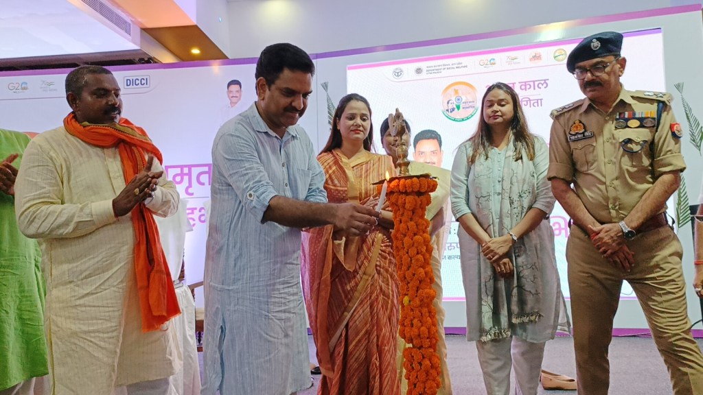 उन्होने पुलिस अधीक्षक ओमवीर के कार्याे की सराहना करते हुए कहा कि आज मुख्यमंत्री के निर्देशन में पुलिस विभाग द्वारा की जा रही कार्यवाही से अपराधियों के हौसलो को तोड़ा गया है। जहां अपराधी हाथो में हथियार लहराते हुए देखे जाते थे वह आज जेल के सलाखो के पीछे थर-थर काप रहे है। आज इसी की देन है कि प्रदेश में हुए इन्वेस्टर समिट मे निवेश का बहुत ही बड़ा संकल्प मिला है। जहां पूरे निवेश का एक तिहाई हिस्सा केवल पूर्वाचल को मिला जो हमारे लिए बहुत ही शौभाग्य की बात है। उन्होने कहा कि जैसे-जैसे उद्योग हमारे पास आयेगे, हमारे पास अवसर भी होगे। लेकिन अवसर का लाभ लेने के लिए हमे तैयारी करनी होगी और उसी तैयारी के लिए ही आज यह कार्यक्रम आयोजित किया गया है। उन्होने कहा कि अभी हमने आजादी के 75 वर्ष होने पर आजादी का अमृत महोत्सव मनाया है लेकिन इस महोत्सव के साथ अगले 25 वर्ष इसके उपर विचार/मंथम की जरूरत है। उन्होने कहा कि ये अमृत काल तब होगा जब हम अमृत मंथन करेगे। उन्होने इस कार्यक्रम के सफल आयोजन हेतु समाज कल्याण विभाग एवं जिला प्रशासन को बधाई दी। कार्यक्रम में जिलाधिकारी ने विभिन्न योजनाओ की विस्तारपूर्वक जानकारी देते हुए अपने सम्बोधन मे कहा कि इस आयोजन का मुख्य उद्देश्य समाज कल्याण की योजनाओं को विभिन्न व्यक्ति तथा समाज में अन्तिम पायदान पर खड़े व्यक्ति तक पहुचाया जाना है। जिससे इन योजनाओ का प्रचार प्रसार हो सके। प्रधानमंत्री एवं मुख्यमंत्री की सोच है कि हमारी पारम्परिक शिक्षा के साथ-साथ जिसके पास हुनर और कौशल होगा, वो रोजगार मागेगा नही बल्कि रोजगार सृजित करेगा। उन्होने कहा कि जिसके पास कौशल होगा, वही कुशल होगा, जिसके पास हौसला होगा वही सफल होगा। उन्होने कहा कि जो भी नवयुवक/नवयुवतियां उद्यम से जुड़ना चाहते है उनको किस प्रकार सहायता दी जाये इस हेतु विभिन्न विभागो के द्वारा स्टाल के माध्यम से उन्हे जानकारी दी जा रही है। उन्होने सभी को आपसी सामन्जस्य स्थापित करते हुए इस अवसर का लाभ उठाने की बात कही। जिला पंचायत अध्यक्ष सपना सिंह ने मंत्री के जनपद में प्रथम आगमन पर बधाई देते हुए समाज कल्याण विभाग द्वारा संचालित सामुहिक विवाह योजना की सराहाना करते हुए कहा इस योजना के माध्यम से ऐसे गरीब एंव असहाय व्यक्तियों के पुत्रियो की शादियां होती है जो अपनी पुत्रियो की शादी करने मे सक्षम नही है। इस योजना के माध्यम से जनपद में हजारो-हजारो की संख्या में बेटियो के हाथ पीले होते है। इसके लिए उन्होने मुख्यमंत्री का आभार व्यक्त किया। कार्यक्रम के दौरान मुख्य अतिथी ने निष्पक्ष एवं पारदर्शी भर्ती प्रक्रिया के अन्तर्गत नव प्रोन्नत 14 मुख्य सेविकाओं को नियुक्ति पत्र वितरण किया। कार्यक्रम के अन्त में मुख्य अतिथि न