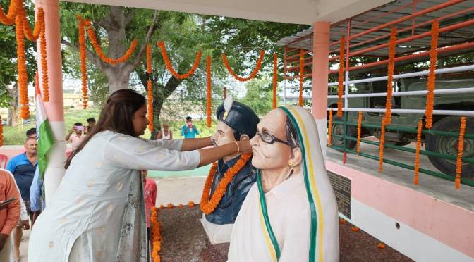 गाजीपुर। जिलाधिकारी आर्यका अखौरी ने कारगिल विजय दिवस के अवसर जनपद के जखनियॉ तहसील अन्तर्गत धामूपुर गॉव वीर अब्दुल हमीद स्मारक स्थल पर बुधवार को पहुचकर शहीद के मूर्ति पर माल्यार्पण कर नमन कर श्रद्धाजलि दी एवं कारगिल युद्व के दौरान शहीद हुए वीर शहीदो को नमन किया। करने के उपरान्त राष्ट्रगान गाया गया। इस अवसर पर जिलाधिकारी ने कहा कि देश की सीमाओ के सुरक्षा में लगे वीर शहीदो ने कारगिल युद्ध के दौरान अपने प्राणो की आहूति देकर देश की आन बान शान को बचाया तथा भारत माता के मस्तक को झुकने नही दियां। पाकिस्तानी सैनिको को खदेड़ते हुए कारगिल की चोटी पर अपना राष्ट्र ध्वज फहराया। इसके उपरान्त जिलाधिकारी ने शहीद स्थल पर पौधरोपण किया तथा अन्य लोगो को वृक्षारोपण हेतु अपील की। इस अवसर पर उपजिलाधिकारी जखनियां, प्रबुद्धजन, शहीद वीर अब्दुल हमीद के परिवारजन मौजूद रहे।