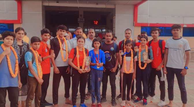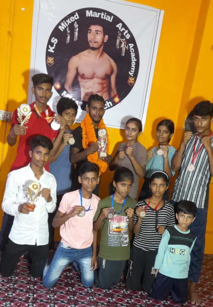 गाजीपुर। काशी कप किक बॉक्सिंग टूर्नामेंट का आयोजन वाराणसी के सीवपुर में 10 अगस्त को किया गया। जिसमें गाजीपुर के K.S मिक्स मार्शल आर्ट एकेडमी के 11 खिलाड़ियों ने मेडल प्राप्त किया और गाजीपुर का नाम रोशन किया। जाया दूबे 43 किलो भार वर्ग मे स्वर्ण पदक, काजल 45 किलो भार वर्ग में स्वर्ण पदक, मुस्कान मौर्य 60 किलो भार वर्ग में स्वर्ण पदक, जया कुशवाहा 26 किलों भार वर्ग में स्वर्ण पदक, संजना मौर्य 35 किलो भार वर्ग में रजत पदक, प्रियंशु दुबे 55 किलो भार वर्ग में स्वर्ण पदक, सिद्धार्थ मौर्य 52 किलो भार वर्ग में स्वर्ण पदक, आलोक प्रकाश 51 किलो भार वर्ग में रजत पदक, उपेंद्र चौधरी 52 किलों भार वर्ग में रजत पदक, ज्ञानेन्द्र कुमार बिंद 48 किलो भार वर्ग में रजत पदक और रोशन शर्मा 35 किलो भार वर्ग में रजत पदक जीत कर अपने जिले का नाम रोशन किया। कोच कृष्णा कुमार शर्मा के देख रेख में खीलाडियो ने मेडल प्राप्त किए। जीतकर आए गाजीपुर स्टेशन पर प्लेयरो और कोच कृष्णा कुमार शर्मा को माला पहना कर सम्मानित किया गया।
