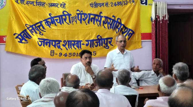 गाजीपुर।सेवा निवृत कर्मचारी एवम पेंशनर्स ऐशो शाखा गाजीपुर की मासिक बैठक जिला मुख्यालय स्थित पीडब्लूडी जे ई संघ भवन में ऐशो के जिलाध्यक्ष मुक्तेश्वर प्रसाद श्रीवास्तव की अध्यक्षता बुधवार को सम्पन्न हुई।जिसमे सेवा निवृत कर्मचारी एवम पेंशनर्स ऐशो सदस्यता अभियान चलाने का निर्णय लिया गया।बैठक को संबोधित करते हुए जिलाध्यक्ष मुक्तेश्वर श्रीवास्तव ने कहा कि अपनी अधिवर्षता आयु पूर्ण कर अवकाश ग्रहण करने वाले कर्मचारियों के पेंशन प्रकरण एवम अन्य देयक का समय से भुगतान नहीं किया जा रहा है। फलस्वरूप शासकीय सेवा से अवकाश प्राप्त कर चुके कर्मचारियों में घोर क्षोभ एवम आक्रोश व्याप्त है। जो आंदोलन जैसी अप्रिय स्थिति उत्पन्न हो रही है।जिला मंत्री जनार्दन सिंह ने कैशलेश चिकित्सा सुविधा उपलब्ध कराने के लिए पंडित दीनदयाल कैशलेश हेल्थ कार्ड एवम सदस्यता अभियान युद्ध स्तर पर चलाने का अनुरोध किया।राज्य कर्मचारी संयुक्त परिषद के पूर्व जिलाध्यक्ष अम्बिका दूबे ने पेंशनर्स ऐशो के प्रत्येक आन्दोलन में हर सम्भव सहयोग का आश्वासन दिया।ऐशो के कोषाध्यक्ष अशोक कुमार ने ऐशो की सांगठनिक गतिविधियों के सुचारू रूप से संचालन हेतू संघ भवन आवंटित कराने की मांग की।