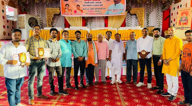 गाजीपुर। अखिल भारतीय कायस्थ महासभा नई दिल्ली एवं कायस्थ एकता फाउंडेशन गाजीपुर द्वारा नगर में स्थित रघुवंशी पैलेस में रविवार को जिले के समाजसेवीयों, शिक्षाविद, कला के क्षेत्र में उत्कृष्ट कार्य कर रहे व्यक्तियों का सम्मान करने के लिए सम्मान समारोह का आयोजन किया गया। इस कार्यक्रम में मुख्य अतिथि डॉक्टर संगीता बलवन्त (पूर्व राज्यमंत्री) विशिष्ट अतिथि विनोद अग्रवाल (नगर पालिका अध्यक्ष प्रतिनिधी) रहे। इस कार्यक्रम में सम्मान प्राप्त करने वाले में पत्रकार विनय यादव, सुशील तिवारी, दीपक, लक्ष्मीकान्त, राशिद अन्सारी, अनुप राप, प्रमोद सिन्हा और विद्यार्थीयों में अंशिका, आदेश, स्मृती, तनिष्का, शुभ्रा और शिक्षा के क्षेत्र में अमरनाथ तिवारी, अजय आन्नद, अनुश्री और कला के क्षेत्र में लव-कुश तिवारी, जयति जैन, प्रदीप राय समाज सेवी सविता सिंह, आसिफ खान, निशांत सिंह, कृष्णनन्द उपध्याय, रविशंकर, छतशाल सिंह, विरेन्द्र सिंह, शीर्षदीप शर्मा, रविशंकर, विदुशेखर, रजनीश मिश्रा, अभिषेक यादव, मोहित सिंह, राजन, विकास यादव, उपेन्द्रकुमार, संजीव अरुण कुमार, उरुज फातमा, अहमद नवाज शामिल रहे। इस अवसर पर कायस्थ महासभा के अरुण श्रीवास्तव, अमित श्रीवास्तव, विभोर श्रीवास्तव, दीनानाथ श्रीवास्तव, शिवशंकर सिन्हा, शशिकान्त, संजय जेवराई, केशव प्रसाद, सोनी श्रीवास्तव, सुनीता व अन्य लोग उपस्थित रहे।