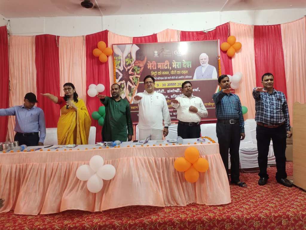 यूनियन बैंक ऑफ़ इंडिया कासिमाबाद के शाखा प्रबंधक संजय कुमार ने कहा कि मेरी माटी मेरा देश कार्यक्रम में लगी चित्र प्रदर्शनी विद्यार्थियों के लिए ज्ञानवर्धक व उपयोगी है। मेरी माटी मेरा देश अभियान उन महापुरुषों को समर्पित है जिन्होंने देश को आजादी दिलाने में अपने प्राणों की आहुति दी। प्रधानमंत्री ने इसे एक राष्ट्रीय पर्व के रूप में पूरे देश में मनाने के लिए निर्देशित किया है। क्षेत्रीय प्रचार अधिकारी तारिक अजीज ने कार्यक्रम के आयोजन पर विस्तार से प्रकाश डाला और कार्यक्रम में उपस्थित अतिथियों को स्मृति चिह्न, अंगवस्त्र भेंट कर सम्मानित किया। कार्यक्रम के प्रारंभ में झंडारोहण, राष्ट्रगान के बाद अतिथियों द्वारा वसुधा वंदन के तहत वृक्षारोपण भी किया गया। कार्यक्रम के दौरान “मेरी माटी, मेरा देश” पर विभाग के द्वारा प्रश्नोत्तरी प्रतियोगिता संचालित की गयी तथा 20 विजयी प्रतिभागियों को विभाग की ओर से अतिथियों द्वारा पुरस्कार देकर सम्मानित किया गया। कार्यक्रम के दौरान स्वास्थ्य विभाग, यूनियन बैंक ऑफ़ इंडिया एवं समन्वित बाल विकास सेवा द्वारा स्टाल लगाकर महाविद्यालय के छात्र-छात्राओं को महत्वपूर्ण संदेश दिया गया। कार्यक्रम के दौरान प्रभारी बीडीओ अरुण कुमार, सहायक विकास अधिकारी पंचायत धनंजय यादव, ग्राम विकास अधिकारी धनंजय कुमार, ग्राम विकास अधिकारी रितेश राय, महाविद्यालय के समस्त शिक्षक सहित कई प्रमुख लोग उपस्थित रहे।