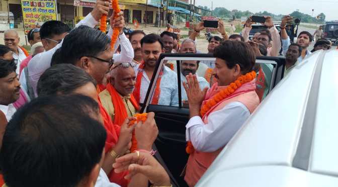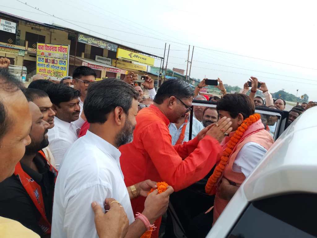 गाजीपुर। भारतीय जनता पार्टी के सांसद, भोजपुरी गायक, अभिनेता मनोज तिवारी का रविवार को घोसी उप चुनाव प्रचार के अंतिम दिन वाराणसी से मऊ जाते समय महाराजगंज तिराहे पर भाजपा जिला अध्यक्ष भानु प्रताप सिंह के नेतृत्व में स्वागत किया गया। इस अवसर पर मनोज तिवारी ने अपने चिर परिचित अंदाज में लोगों का अभिवादन स्वीकार किया और कहा कि भाजपा सरकार नरेन्द्र मोदी और मुख्यमंत्री योगी आदित्यनाथ के नेतृत्व में लगातार देश और प्रदेश के विकास, सम्मान एवं जनता के कल्याण के लिए काम कर रही है। मनोज तिवारी के साथ जिलाध्यक्ष भानुप्रताप सिंह के नेतृत्व में गाजीपुर के पदाधिकारियों का एक जत्था चुनाव प्रचार के लिए घोसी भी रवाना हुआ जो आज चुनाव प्रचार बन्द होने तक वहां घर घर जनसंपर्क कर लोगों को भाजपा प्रत्याशी को भारी मतों से जिताने का अनुरोध करेगा।