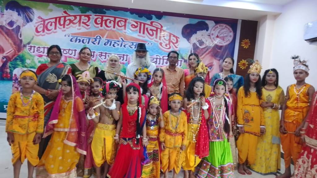 गाज़ीपुर।वेलफेयर क्लब द्वारा श्री कृष्ण जन्माष्टमी के अवसर पर “कजरी महोत्सव “ अंतर्गत राधा कृष्ण रूप सज्जा प्रतियोगिता का आयोजन रामदूत इंटरनेशनल स्कूल मिश्रवलिया में किया गया ।