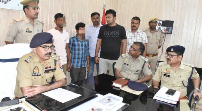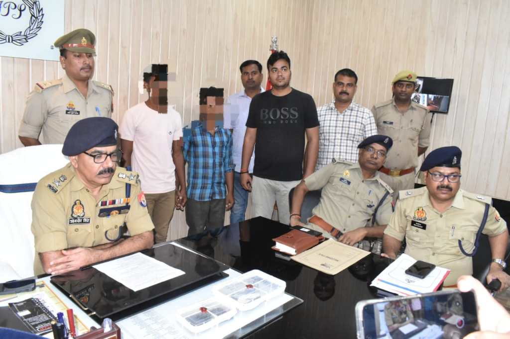 गाजीपुर। क्राइम ब्रांच व जंगीपुर थाना पुलिस टीम ने रंगदारी मांगने वाले दो अभियुक्त को एक तमंचा व कारतूस के साथ और एक बाल अपचारी को गिरफ्तार किया। इसकी जानकारी पुलिस अधीक्षक कार्यालय में प्रेस वार्ता आयोजित कर पुलिस अधीक्षक ओमवीर सिंह ने दिया। उन्होंने कहा कि नगर पंचायत जंगीपुर के पूर्व चेयरमैन प्रतिनिधि लालजी गुप्ता को 20 लाख रूपये की मोबाइल व्हाट्सप के माध्यम से रंगदारी मांगी गई थी। जिसमें दो शातिर अपराधी तथा एक बाल अपचारी को क्राइम ब्रांच टीम एवं थाना जांगीपुर की पुलिस टीम ने अभियुक्त गोलू यादव के मकान से शुक्रवार को गिरफ्तार किया। इस दौरान घटना मे प्रयुक्त मोबाइल एवं अभियुक्त सुनील उर्फ सोनू यादव के पास से 1 देशी तमन्चा 315 बोर व एक जिन्दा कारतूस 315 बोर बरामद किया गया। रंगदारी माँगने वाले अभियुक्तों में सुनील उर्फ सोनू यादव पुत्र राजेश यादव निवासी ग्राम जमसडा थाना दुल्लहपुर, गोलू यादव पुत्र दीना यादव निवासी कृष्णा नगर वार्ड नं. 8 अहिरपुरवा थाना जंगीपुर एवं काल्पनिक नाम सोनू (बाल अपचारी शामिल हैं। गिरफ्तार अभियुक्तों के विवेचना / पूछताछ एक व्यक्ति जिसका नाम विवेक सिंह उर्फ करिया सिंह पुत्र अनिल सिंह उर्फ मुन्ना बजरंगी निवासी ग्राम सोनहरा, दुल्लहपुर का नाम प्रकाश में आया है। गिरफ्तार अभियुक्तों पर जिले के कई थानों पर कई मुकदमे दर्ज हैं। गिरफ्तार करने वाली पुलिस टीम में अपने टीम के साथ जंगीपुर थाना प्रभारी अमित कुमार पाण्डेय, क्राइम ब्रांच प्रभारी रामाश्रय राय एवं सर्विलांस प्रभारी सुनिल तिवारी अपने टीम के साथ शामिल रहे।