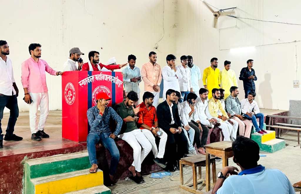 गाजीपुर। बुधवार को पीजी कॉलेज के सभागार में छात्रसंघ चुनाव कराने को लेकर सैकड़ों छात्र नेताओं ने एक बैठक किया। बैठक के पश्चात सभी ने चुनाव कराने को लेकर पत्रक प्राचार्य डॉ राघवेन्द्र पाण्डेय को सौंपा। छात्र नेताओं ने चुनाव कराने सम्बंधित मुद्दों पर चर्चा किया। तत्पश्चात सभी छात्रों ने प्राचार्य आफिस में प्राचार्य के समक्ष एक स्वर में मांग किया कि शीघ्र छात्र संघ चुनाव कि तिथि घोषित नहीं कि गयी तो छात्र आंदोलन पर बैठने को बाध्य होंगे जिसकी सम्पूर्ण जिम्मेदारी महाविद्यालय प्रशासन की होंगी।